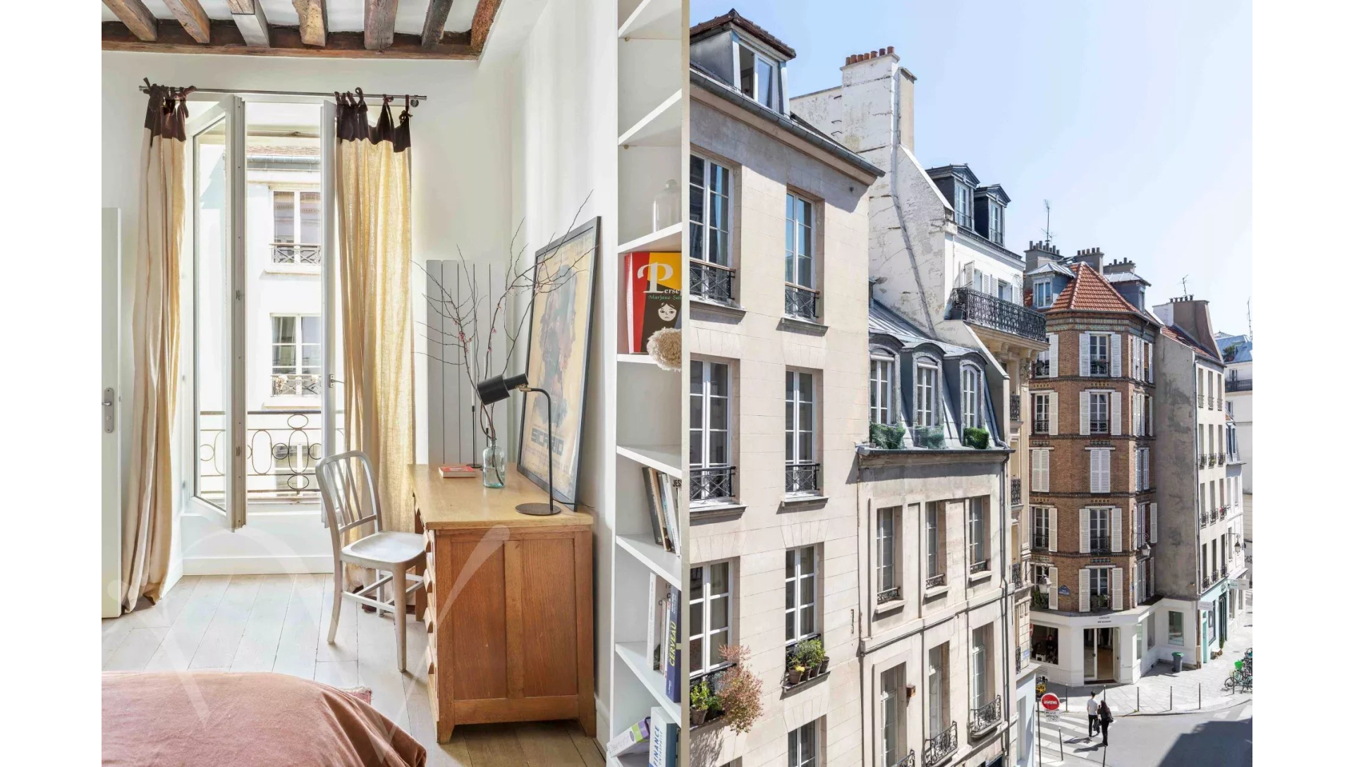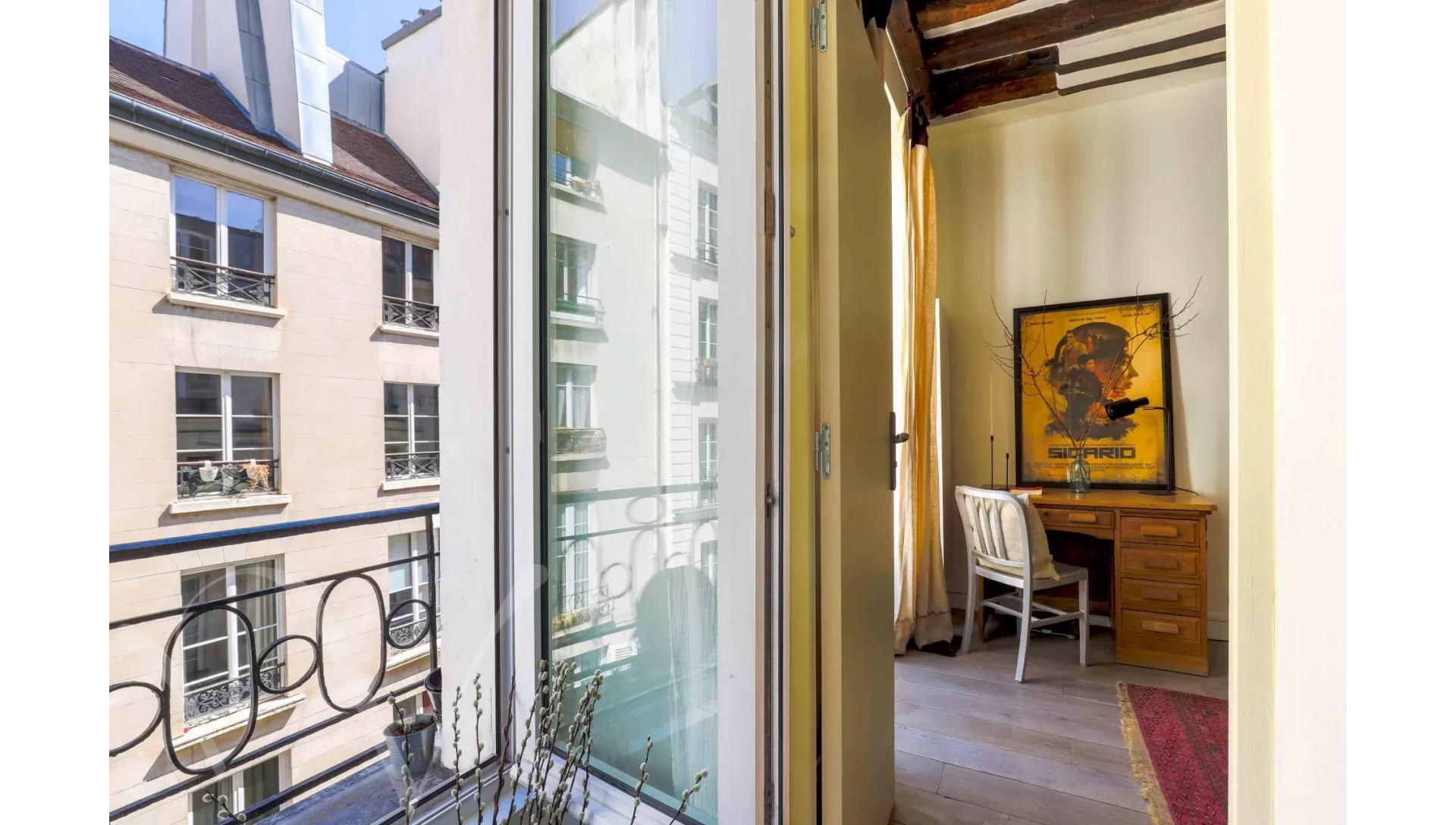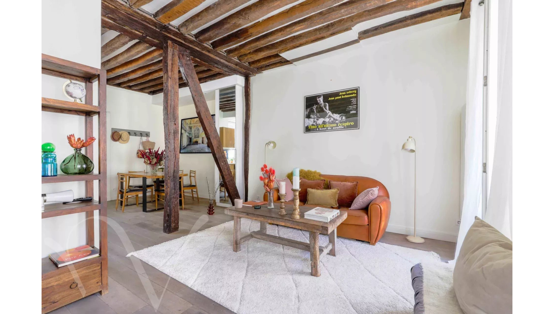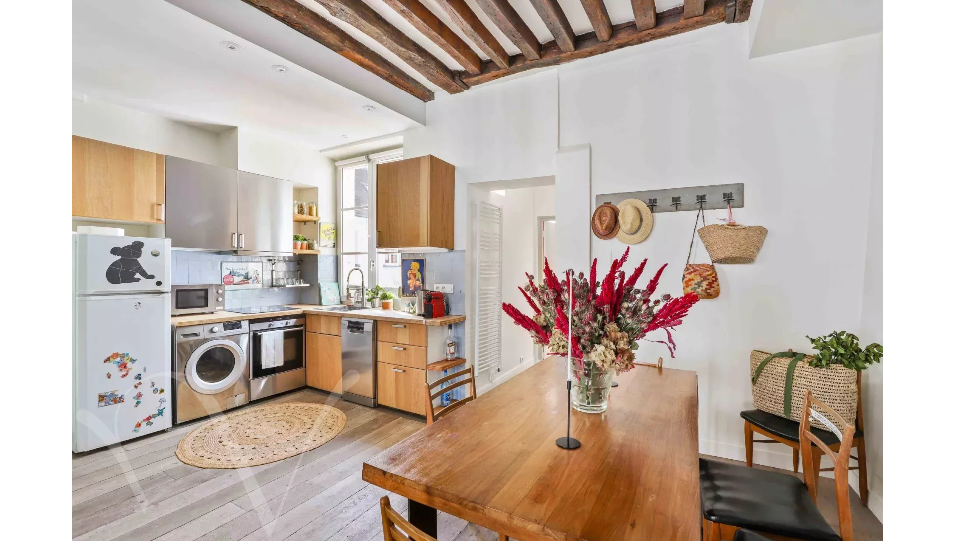 Exclusivité. Situé au 3e étage sans ascenseur d'un immeuble de la fin du XIXe siècle, cet ravissant appartement de 61 m² est niché dans le quartier prisé des Archives, au cœur du 3e arrondissement de Paris. Il se compose d'un beau salon, d'un agréable espace salle à manger avec cuisine ouverte et, de part et d'autre des pièces de réception, des deux chambres lumineuses. Il comprend enfin une salle d'eau et des toilettes séparées. Un mélange de modernité et de charme avec ses poutres apparentes et son parquet chaleureux.