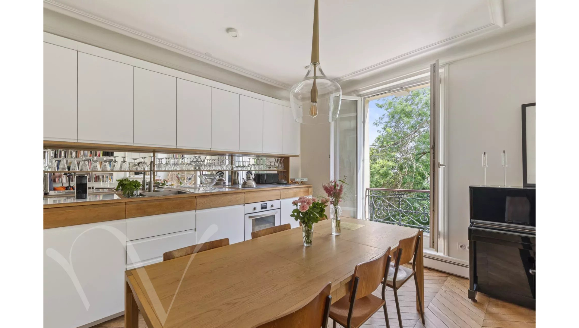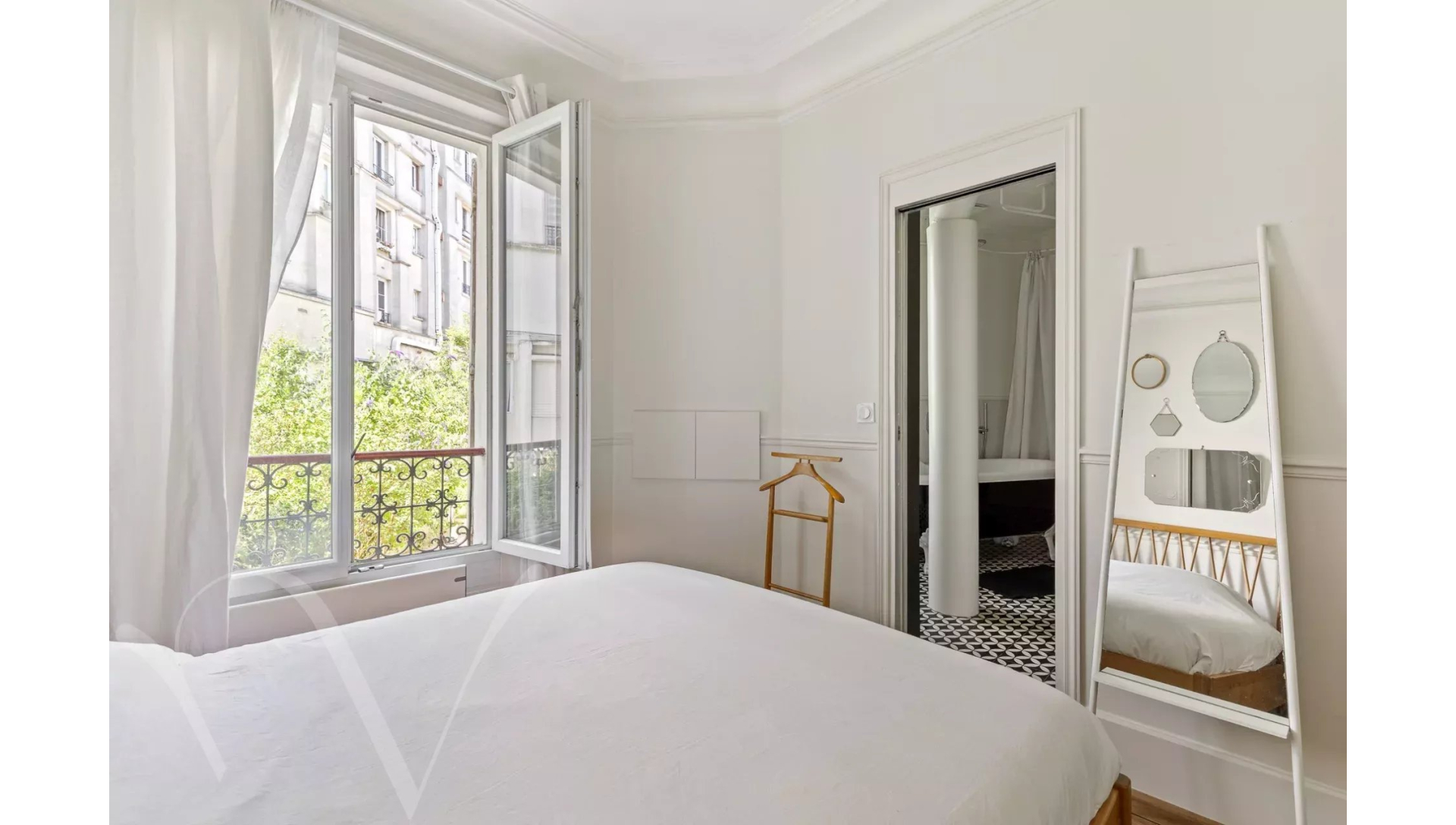 Dans une jolie rue, régulièrement décor de films, qui remonte jusqu'au pied de la basilique du Sacré Cœur, au premier étage avec ascenseur d'un immeuble en pierre de taille bien entretenu, un appartement d'exception de 53.5 m² loi Carrez composé d'une entrée, un salon avec deux fenêtres exposées sud offrant une superbe vue dégagée sur la verdure, une cuisine ouverte, œuvre d'architecte en une seule pièce, une chambre sur cour avec sa salle de bains et son dressing. La rue rend honneur à Maurice Utrillo (1883-1955), artiste peintre de l'École de Paris, qui a souvent utilisé la butte Montmartre comme décor à son œuvre. Cet appartement se démarque par ses prestations haut de gamme, son mobilier sur-mesure, sa fonctionnalité et son aménagement par architecte de renom. Parquet point de Hongrie - cheminée fonctionnelle.