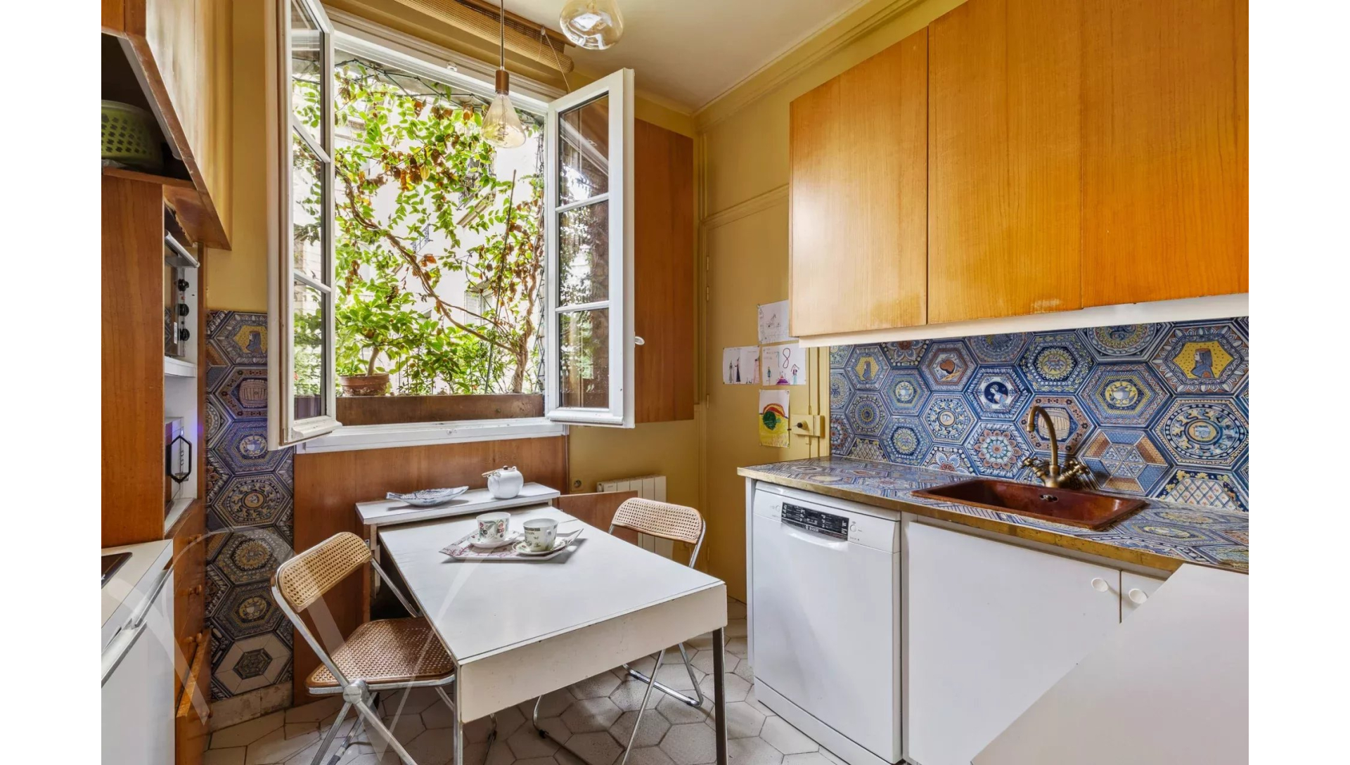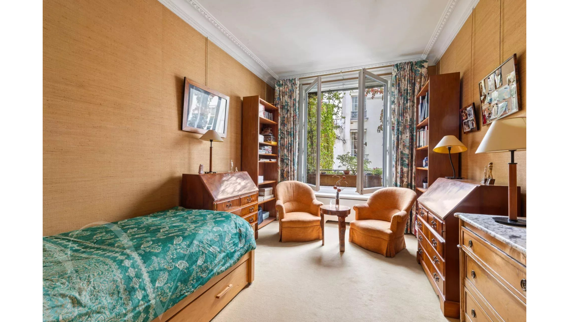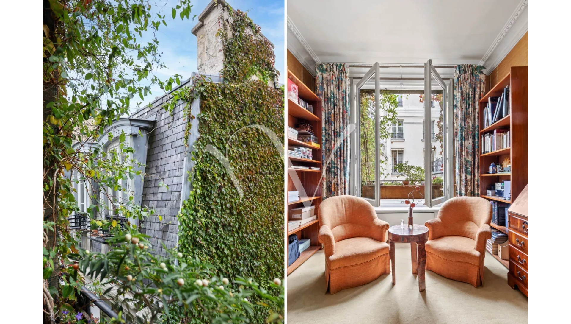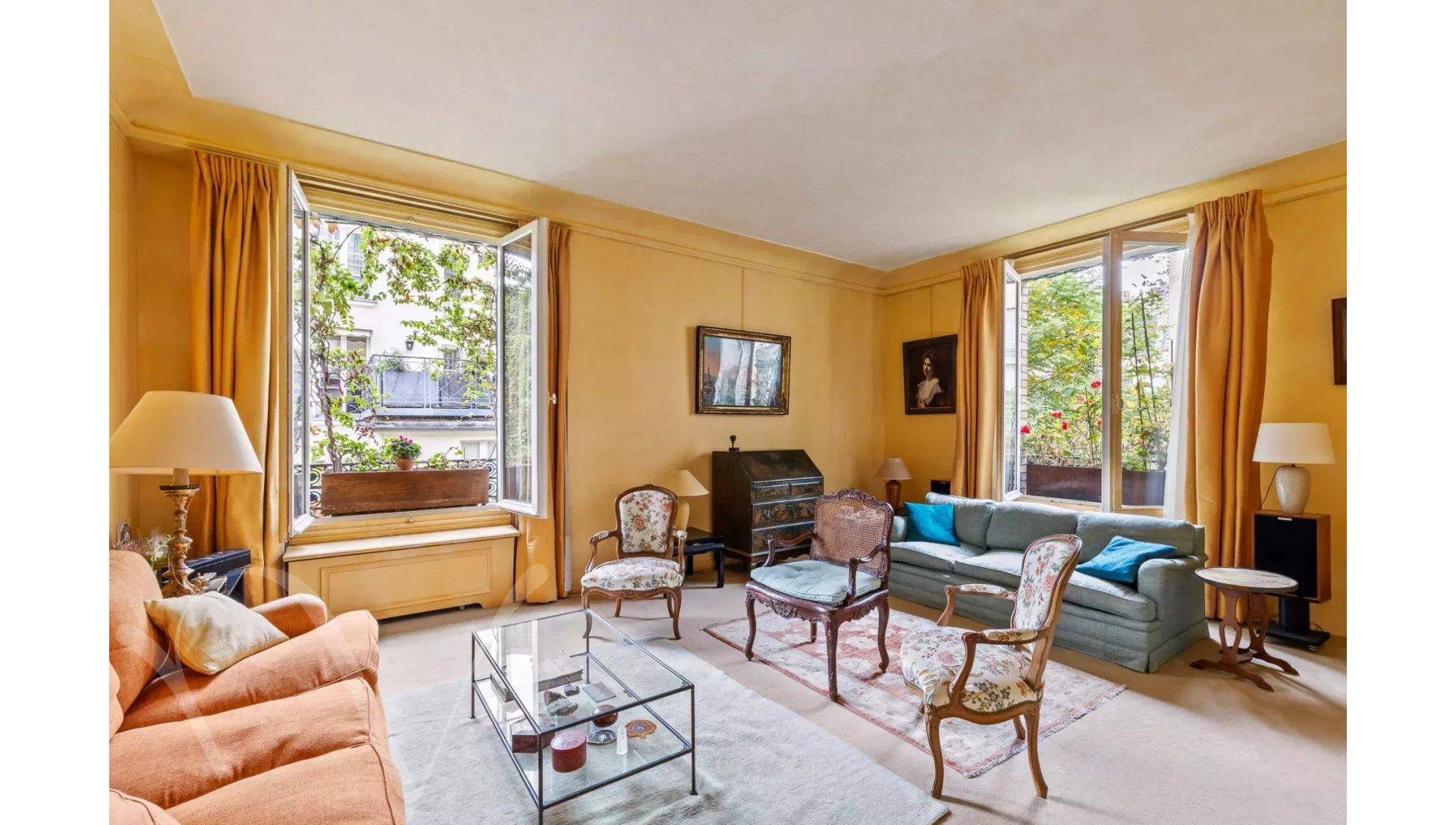 L'appartement est au calme absolu, il donne entièrement sur des jolies cours jardins plantées et fleuries.