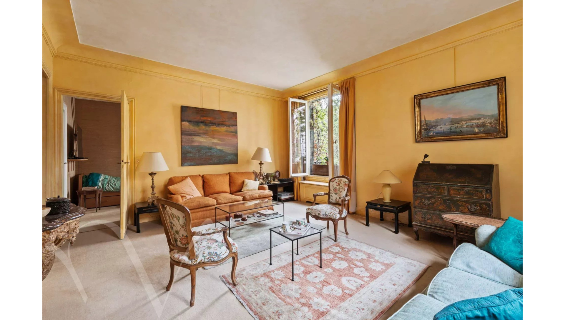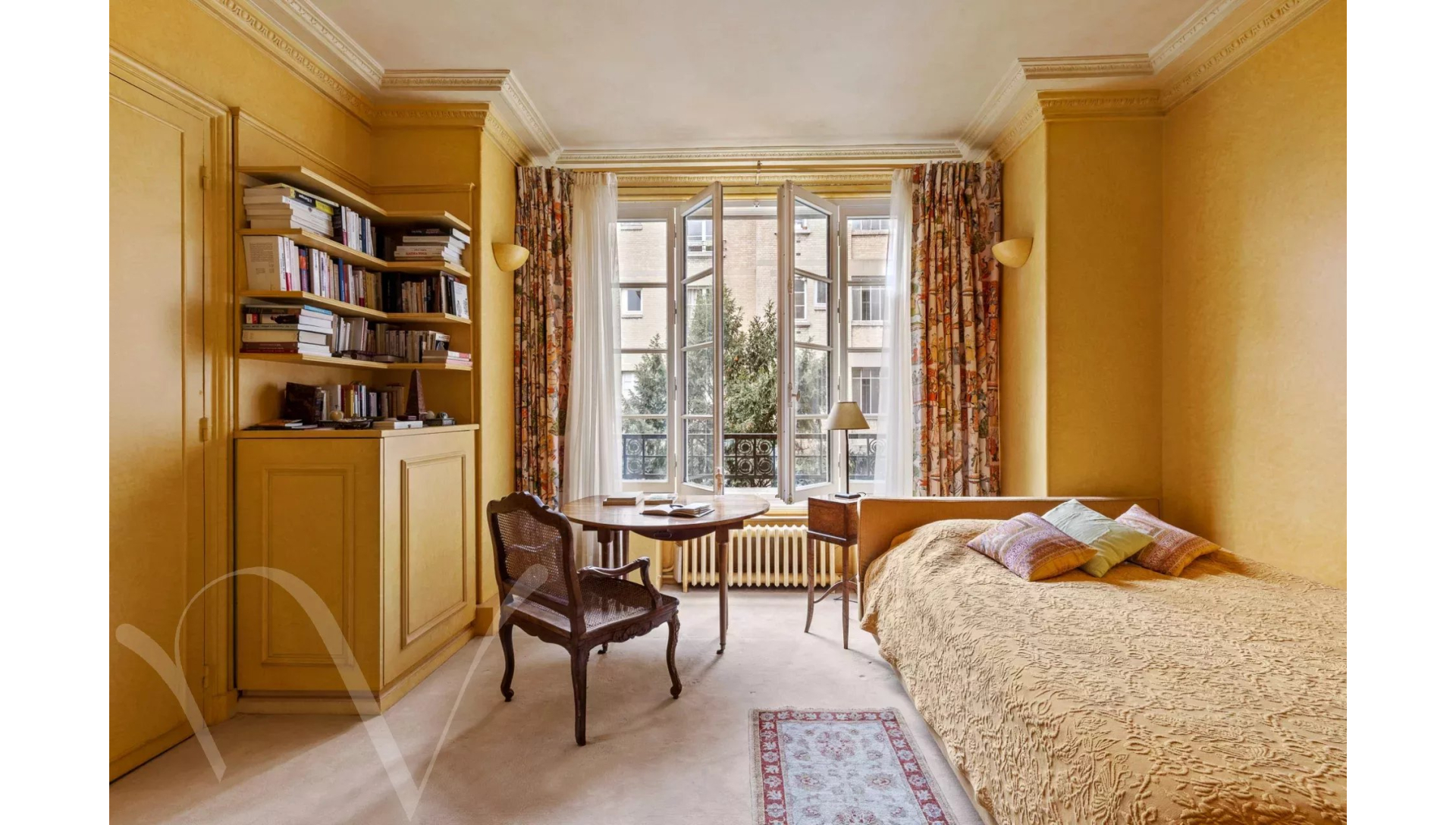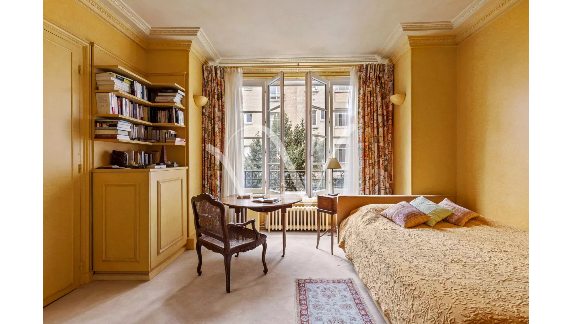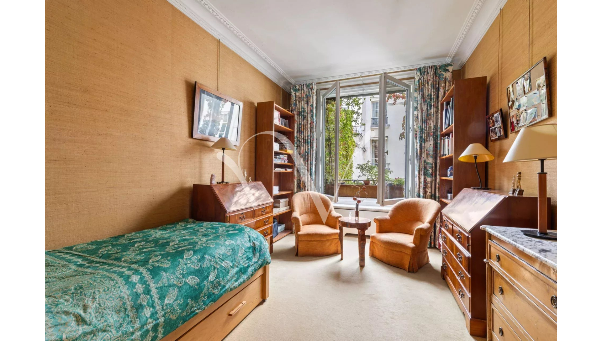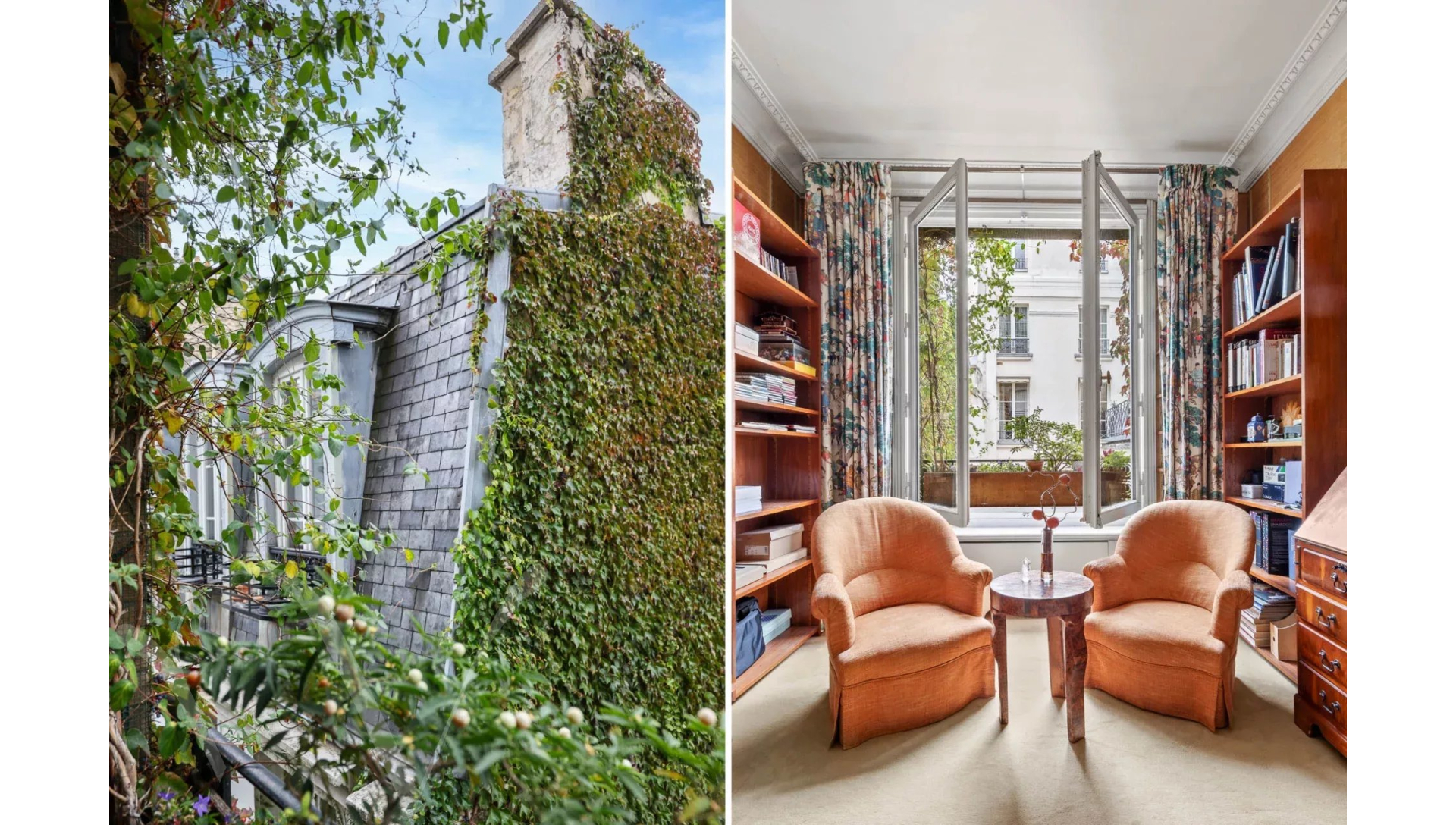 L'appartement est au calme absolu, il donne entièrement sur des jolies cours jardins plantées et fleuries.