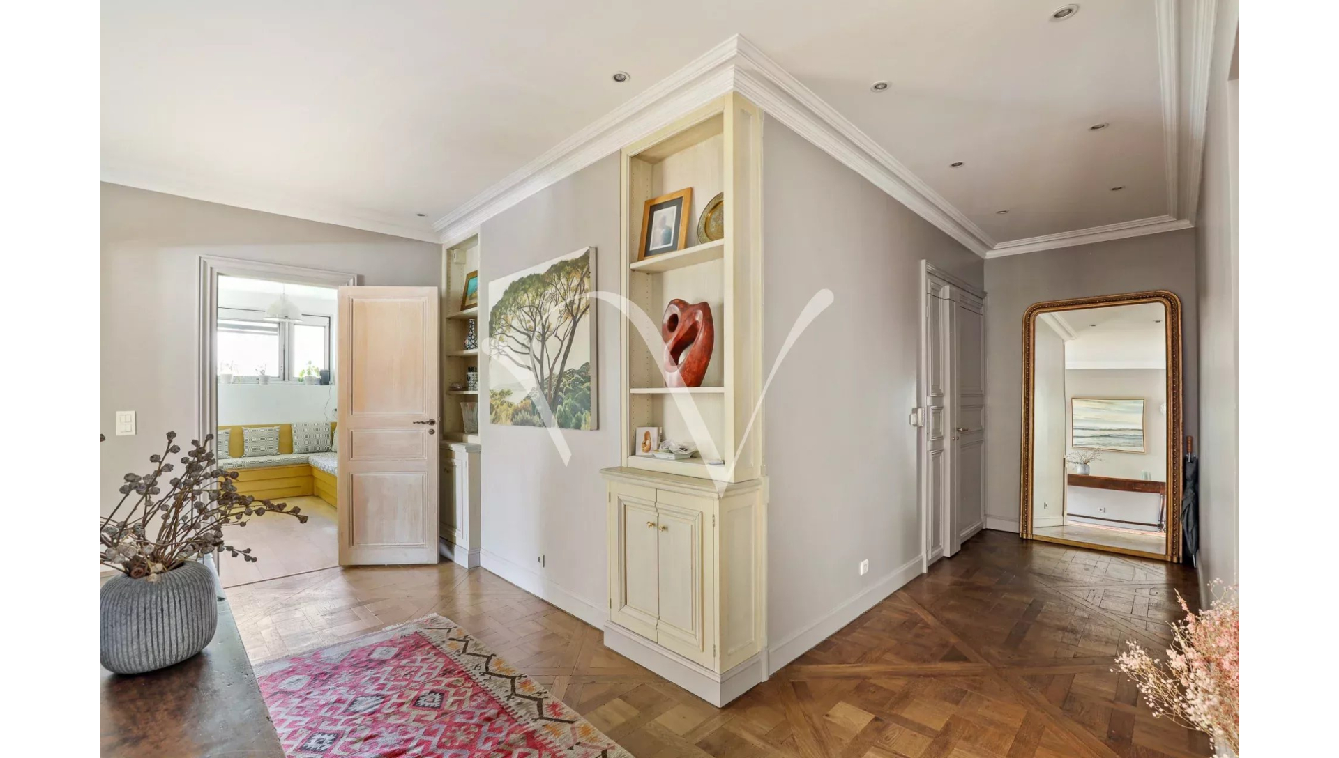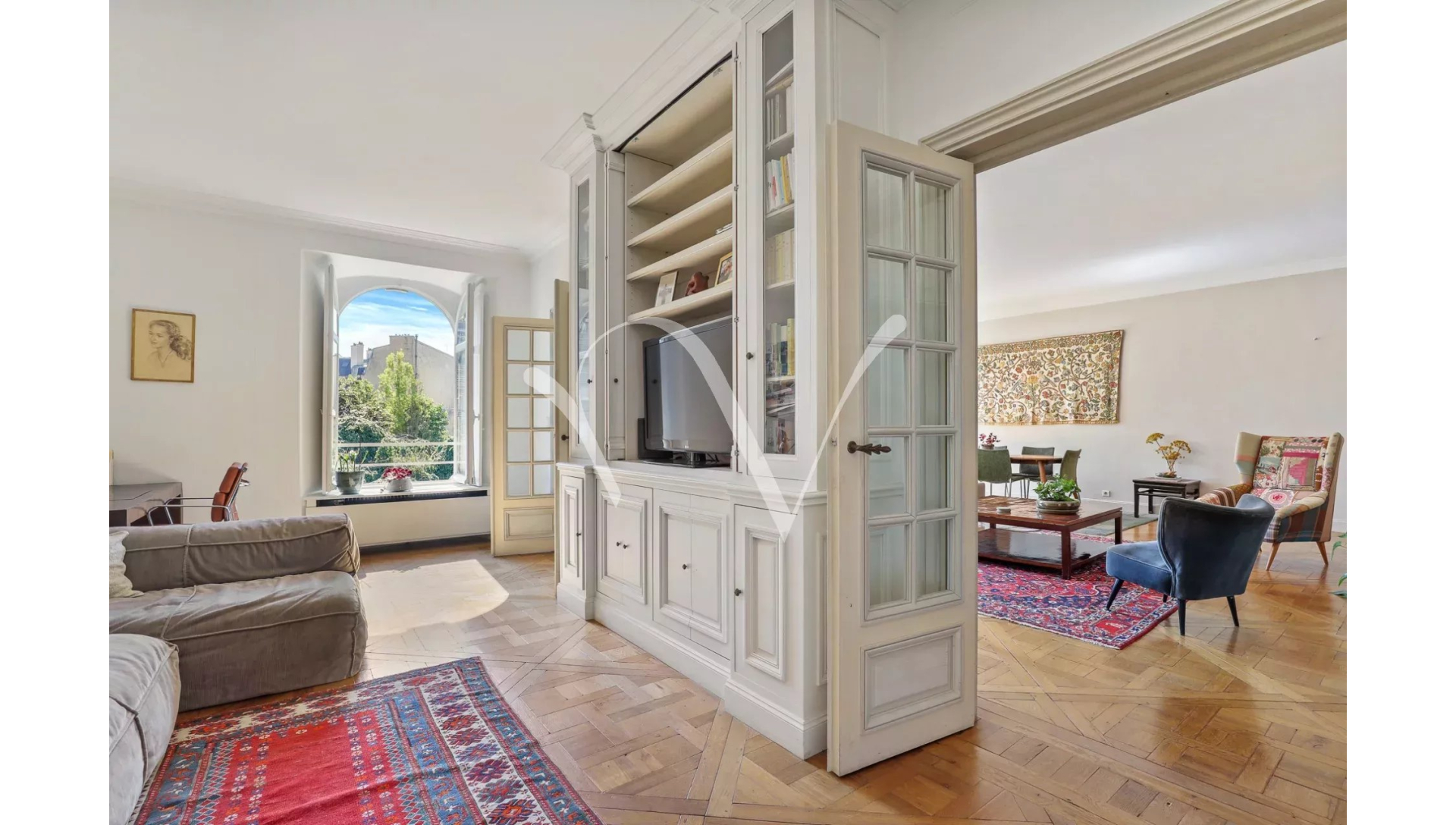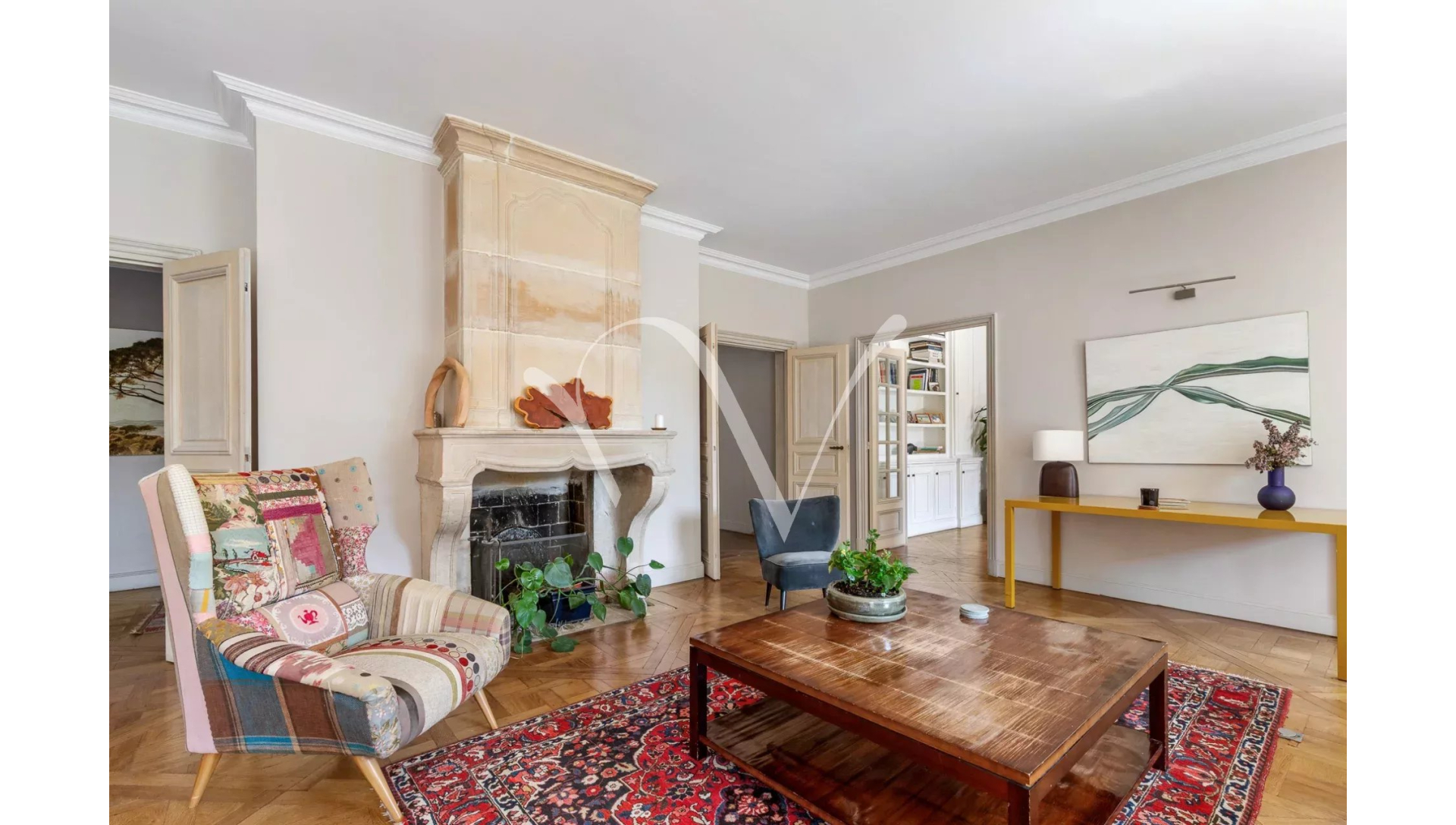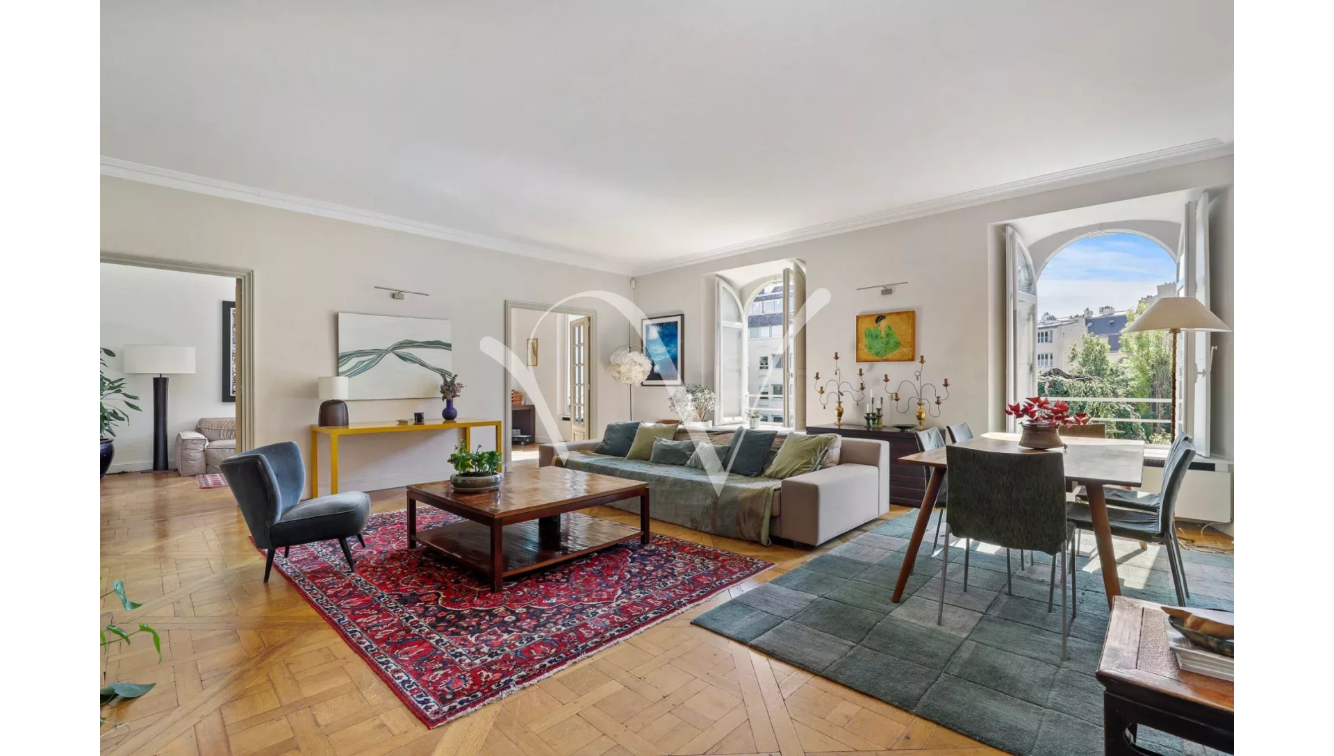 Au coeur de Saint Germain des Prés, dans la partie historique de l'Hôtel de Vaudreuil élevé au XVIIIè siècle, au quatrième étage avec ascenseur, un appartement d'une superficie de 213 m² loi Carrez au calme absolu doté d'une vue majeure sur le jardin du square Récamier et sur la cour d'honneur. Il se compose d'une galerie d'entrée, une vaste pièce de réception, un bureau, quatre chambres chacune avec sa salle de bains et toilette, une cuisine aménagée et équipée, un vestiaire invité, une lingerie et de nombreux rangements. Orientation Est-Ouest. En annexe, un box et une cave. Possibilité de profiter de la piscine à l'intérieur de l'immeuble et d'un espace de sport. Gardien à demeure.