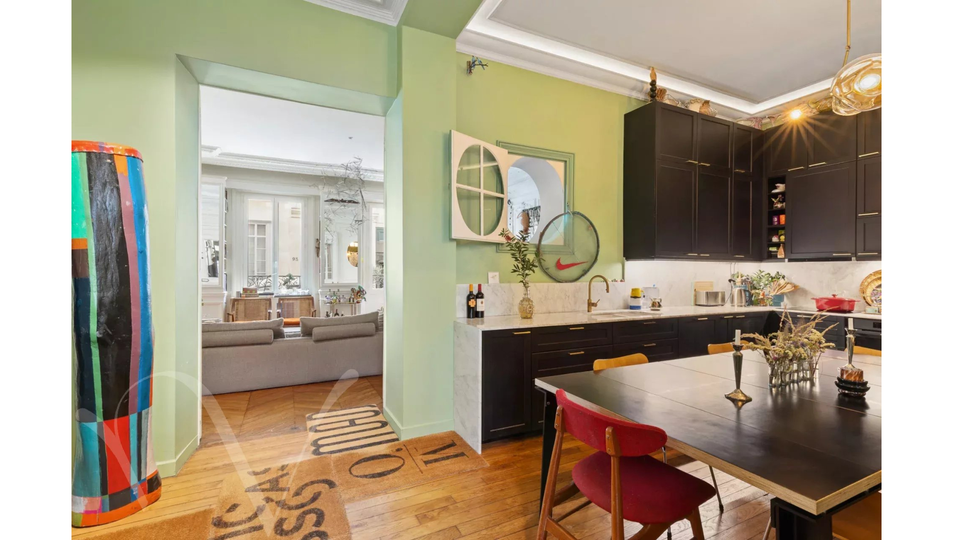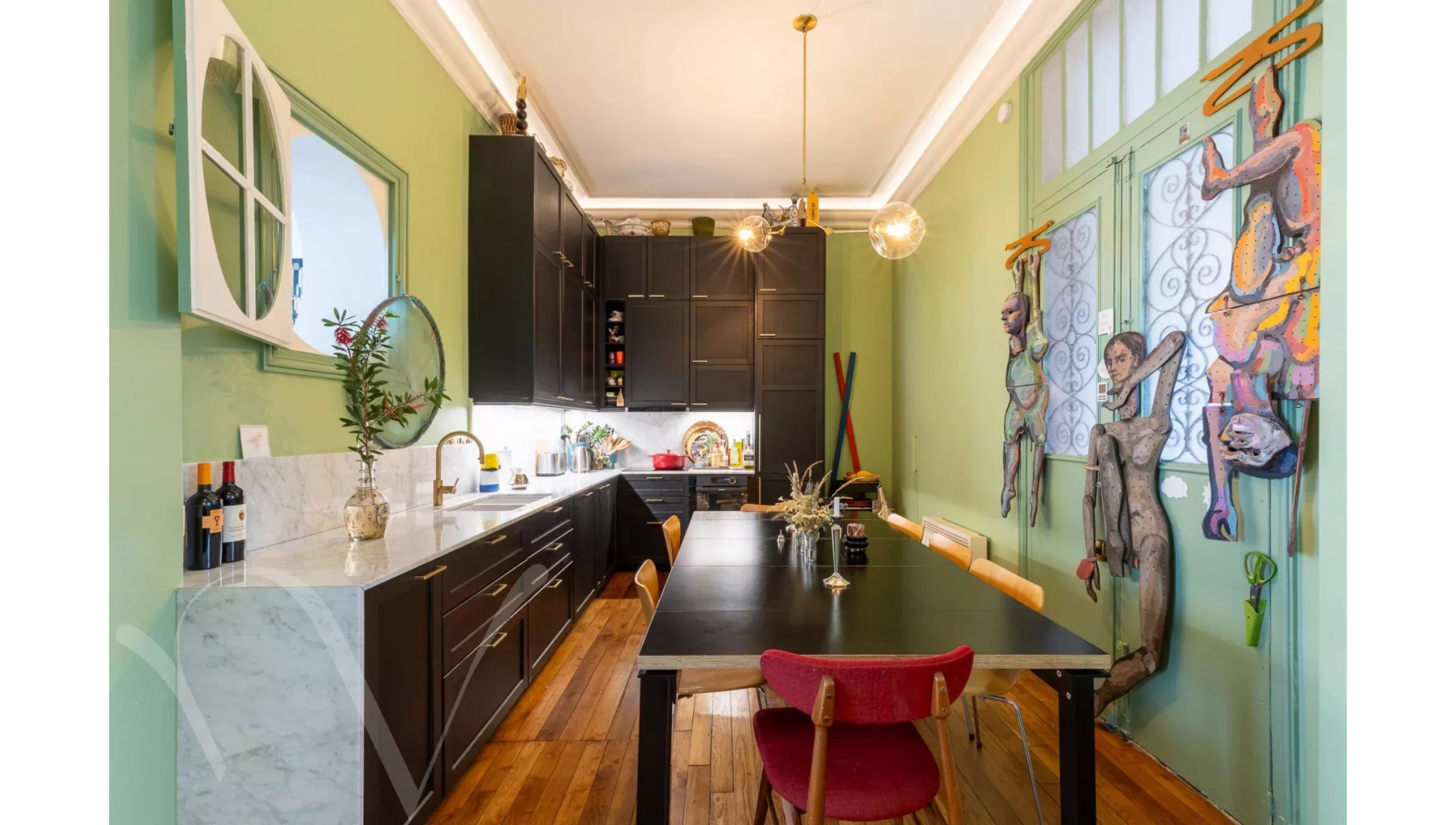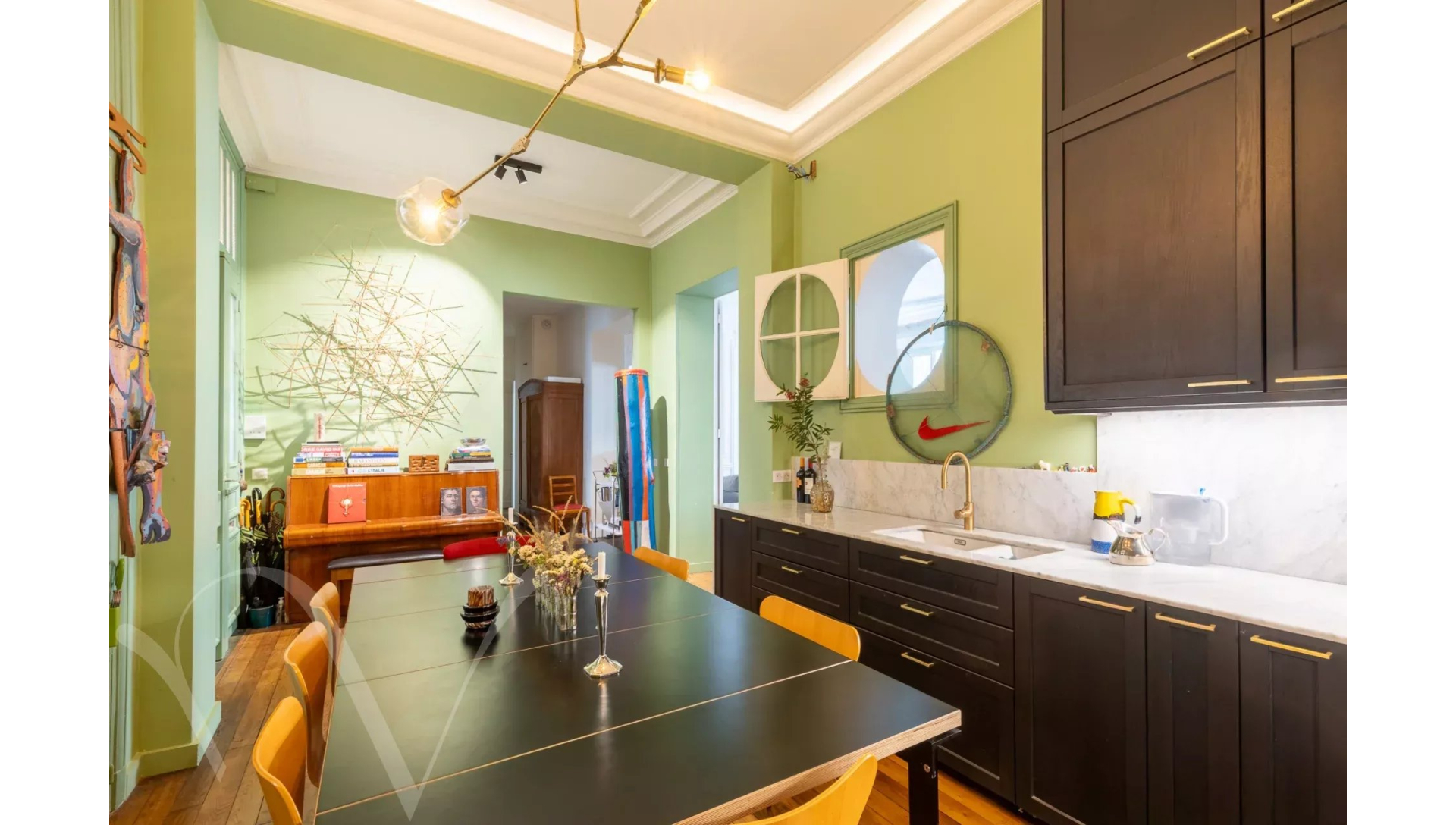 Situé dans un bel immeuble en pierre de taille, cet appartement de 130 m² offre une très grande hauteur sous plafond de 3,50 m. Il est situé au rez-de-chaussée et comprend une entrée qui dessert une grande cuisine superbement aménagée avec un coin salle à manger, un magnifique salon avec quatre fenêtres exposées au sud, trois chambres, une salle de douche et des toilettes séparées. Un escalier partant de l'appartement mène à une belle cave voûtée.
