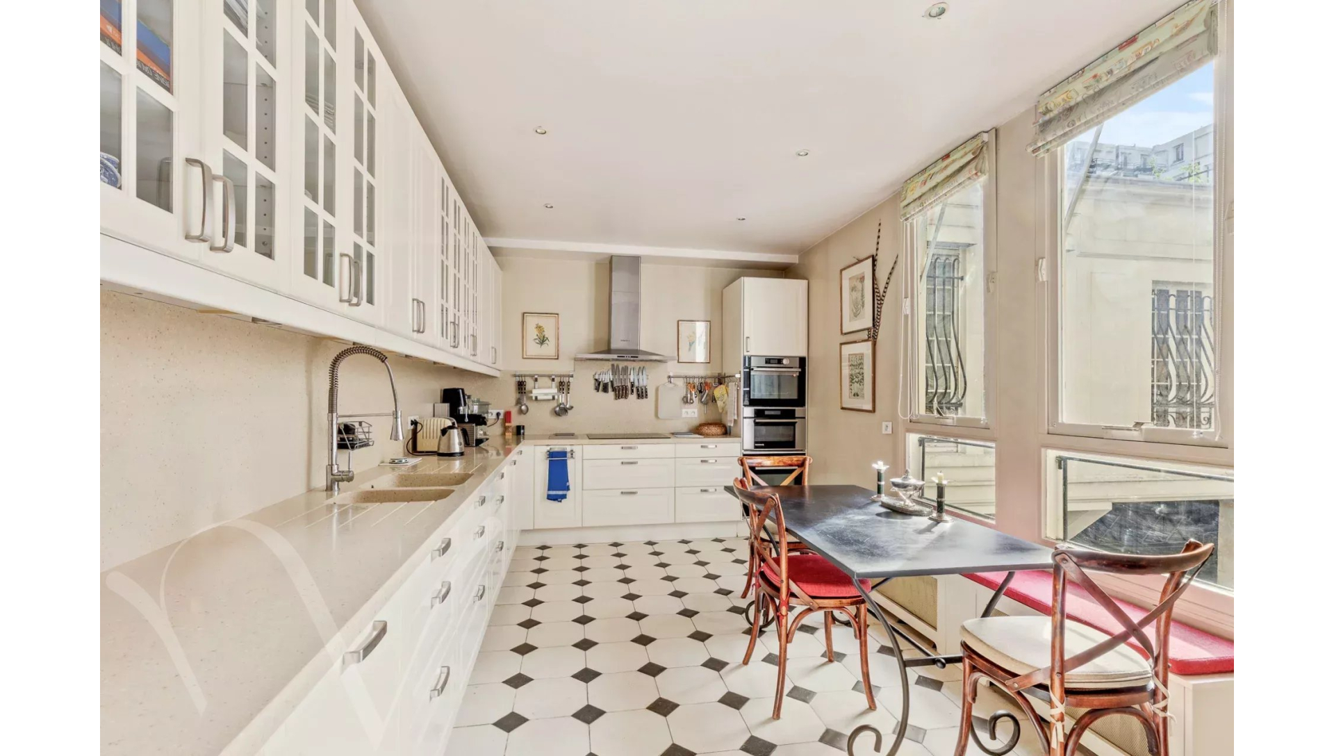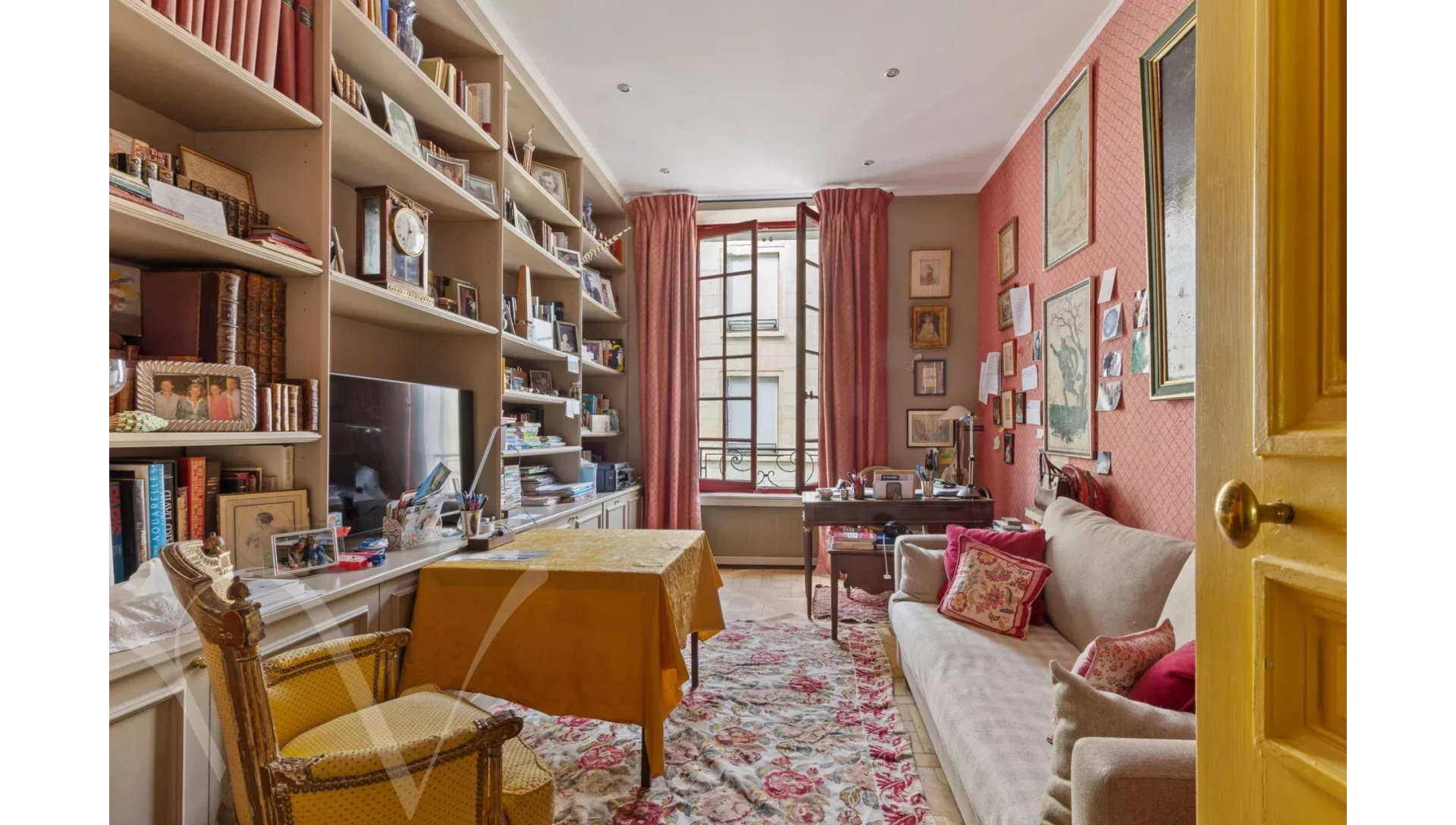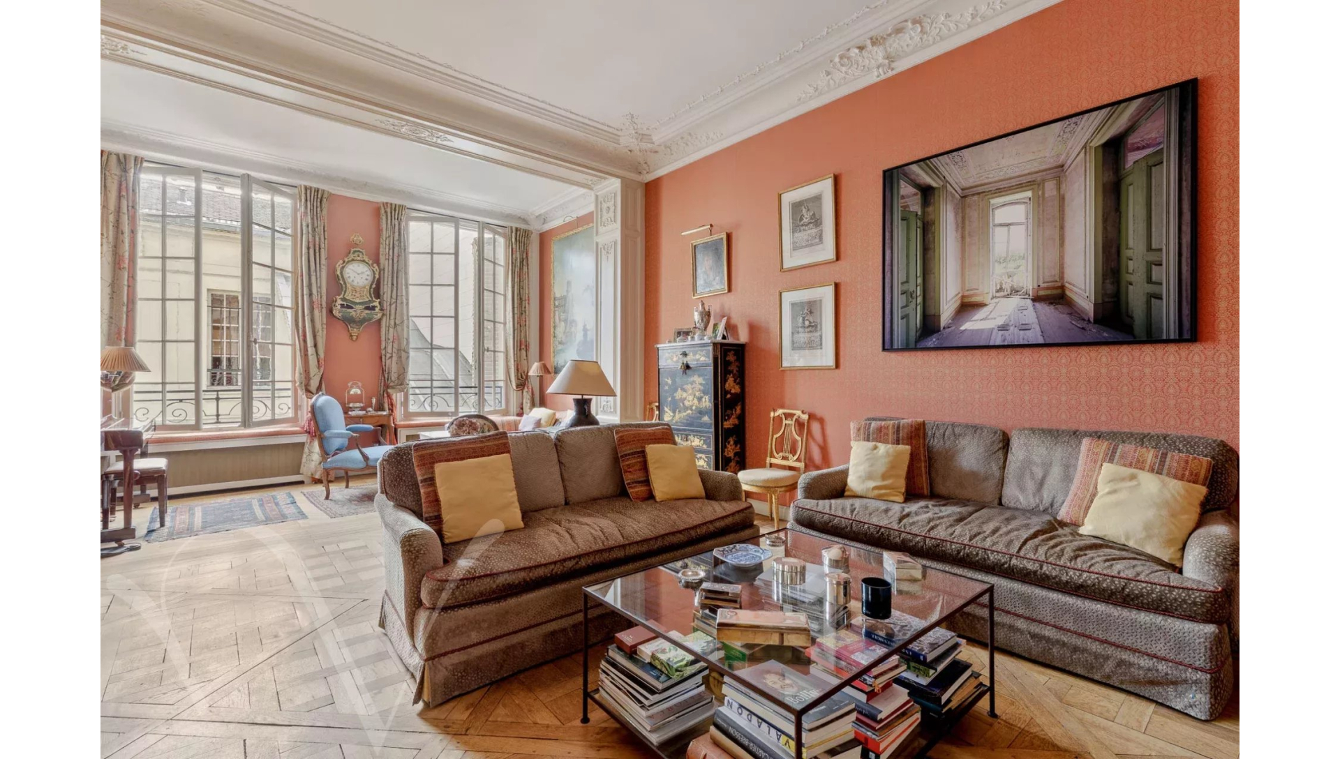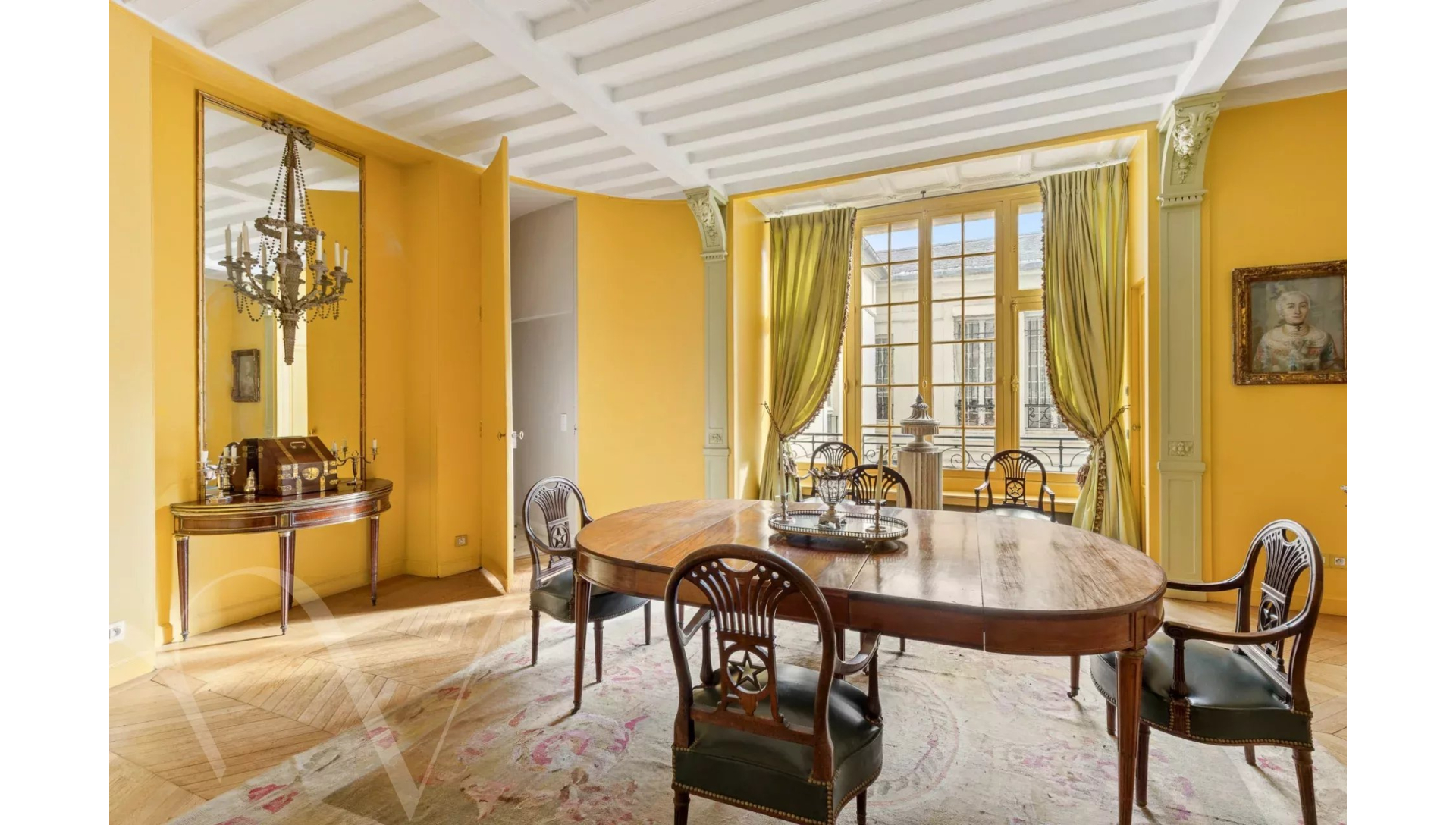 Co-exclusivité. Dans une élégante copropriété fin XVIIIe, au premier étage noble accessible par ascenseur, un appartement traversant de 190,74 m² loi Carrez, il comprend une galerie d'entrée ouvrant sur un salon, un petit salon, une salle à manger avec rangement, trois chambres, dont une suite parentale avec dressing, salle de bains complète, une salle de douche et toilette, une vaste cuisine familiale. Eléments d'origine conservés (parquet Versailles, moulures, cheminées) avec un excellent plan en étoie, de beaux volumes, au calme. Une chambre avec point d'eau au 5e étage de 7.27 m² loi Carrez (9,19 m² au sol)