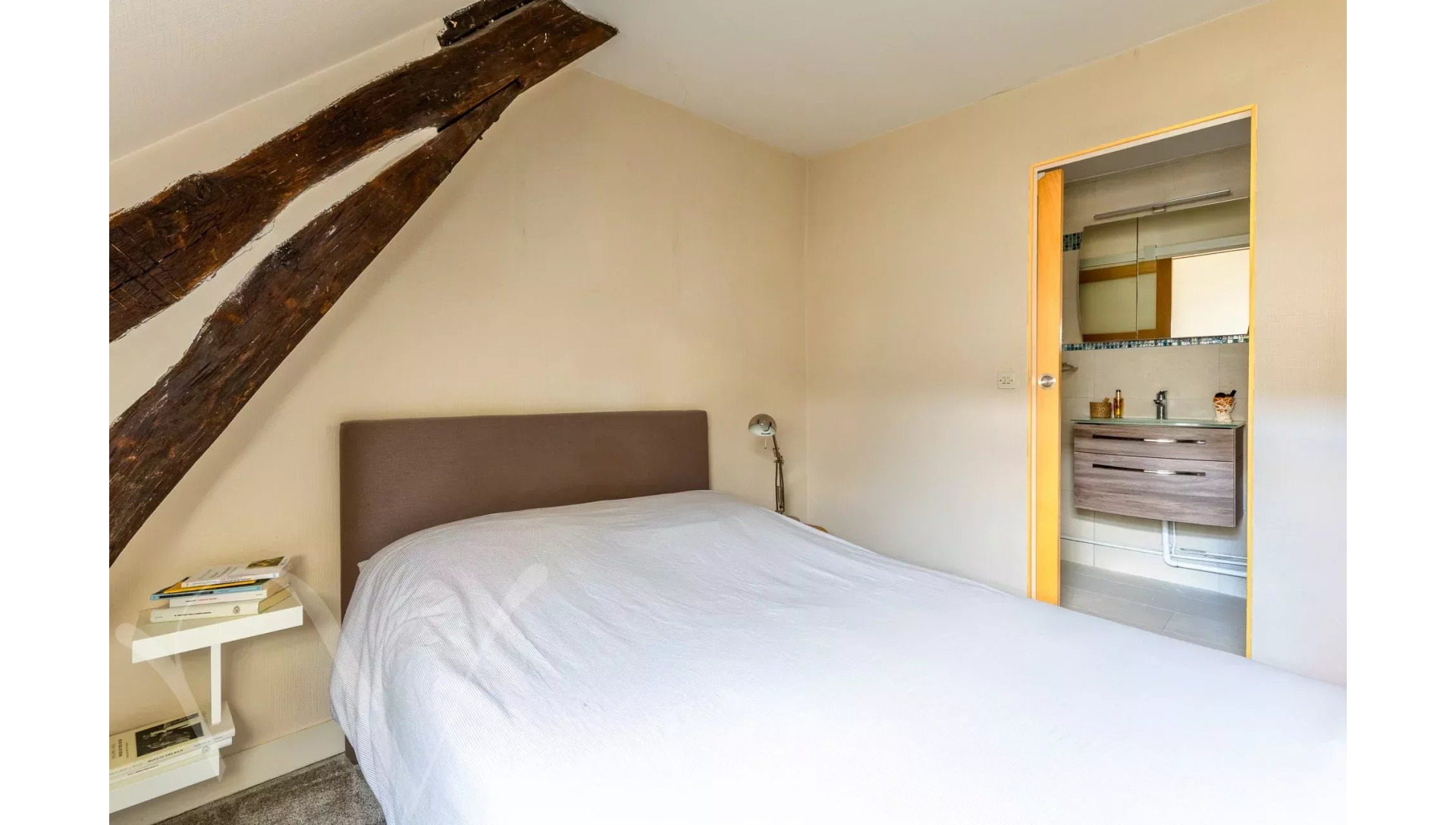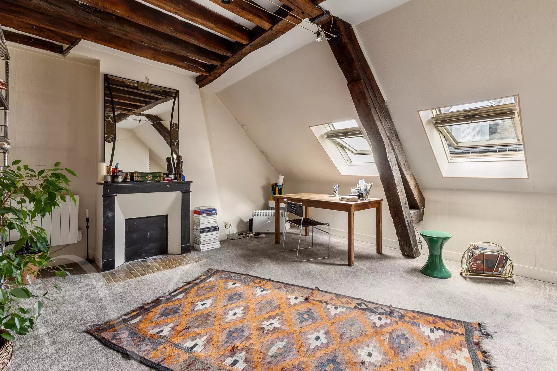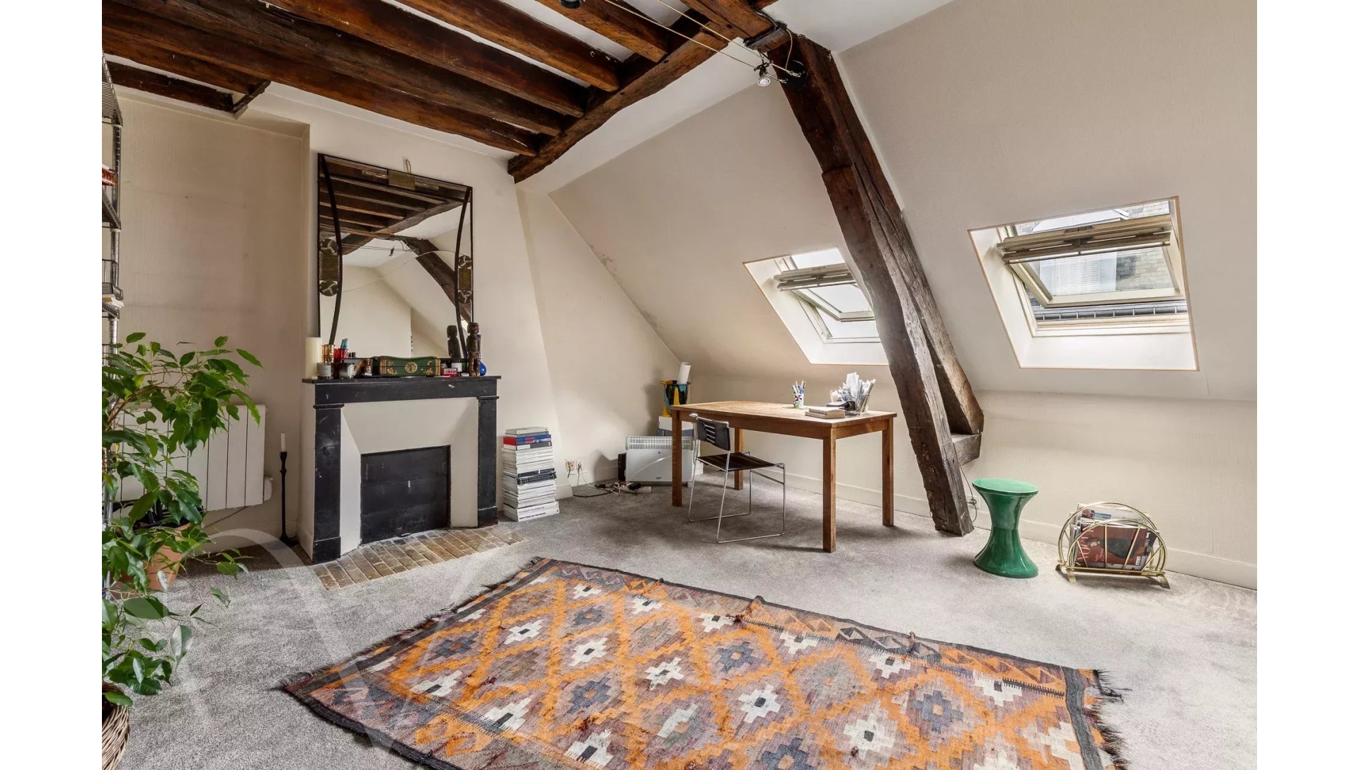 In a magnificent town house, on the 3rd floor accessible by a staircase, charming 2-room apartment on the top floor, featuring an entrance hall leading to a living room with fireplace and 2 windows onto the street, a small kitchen that can be opened onto the living room and an en suite bedroom with bathroom and toilet.