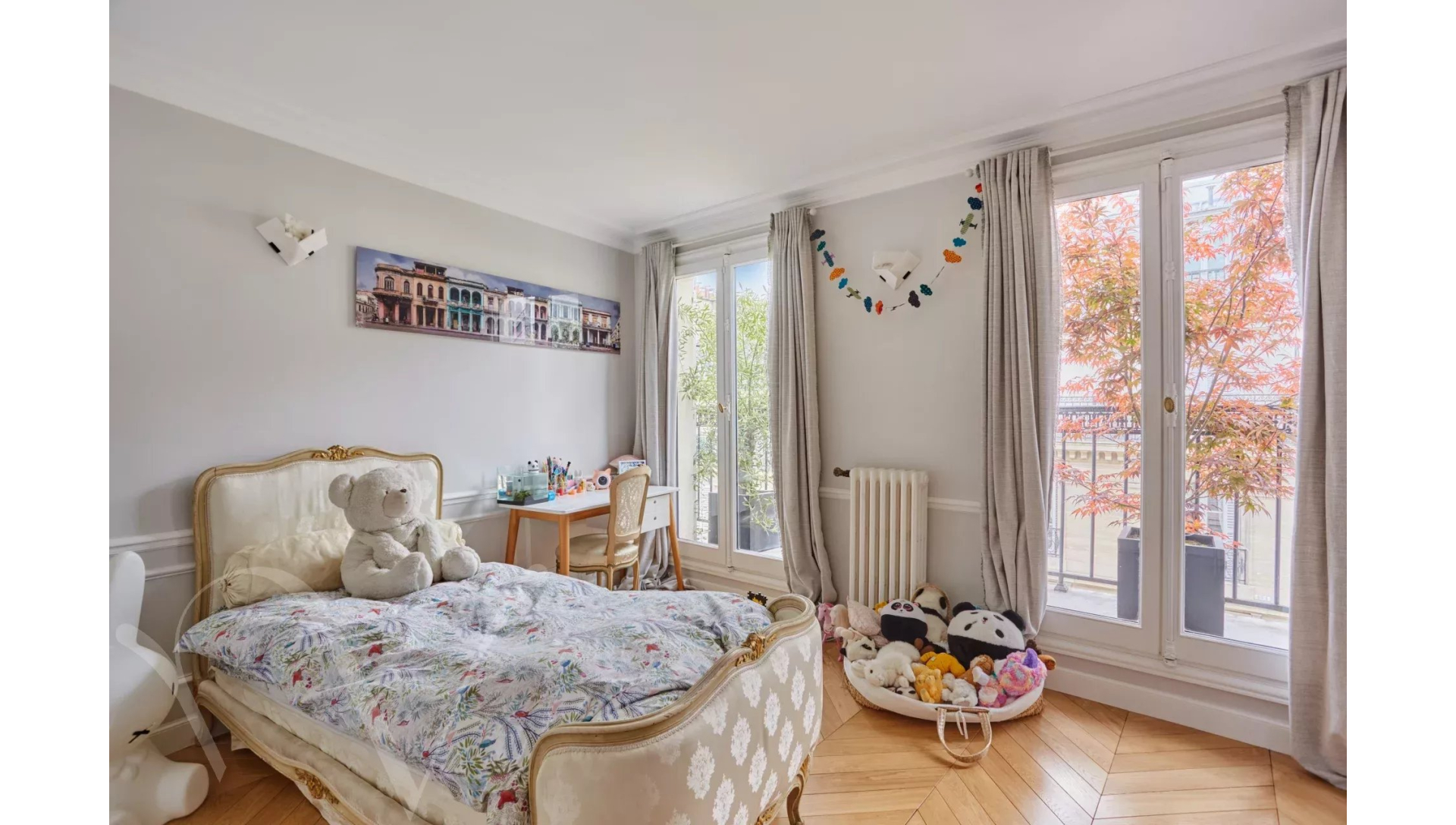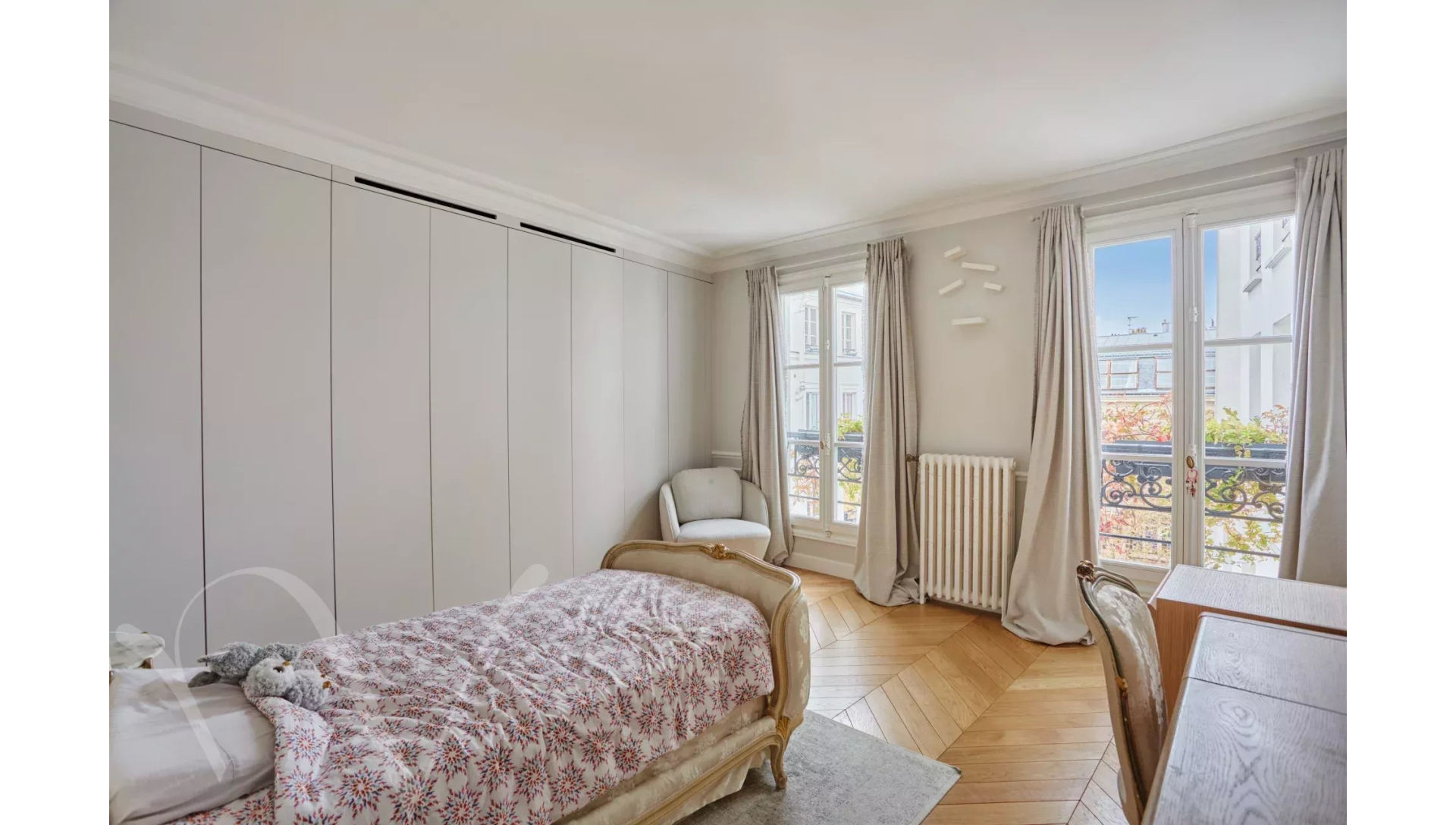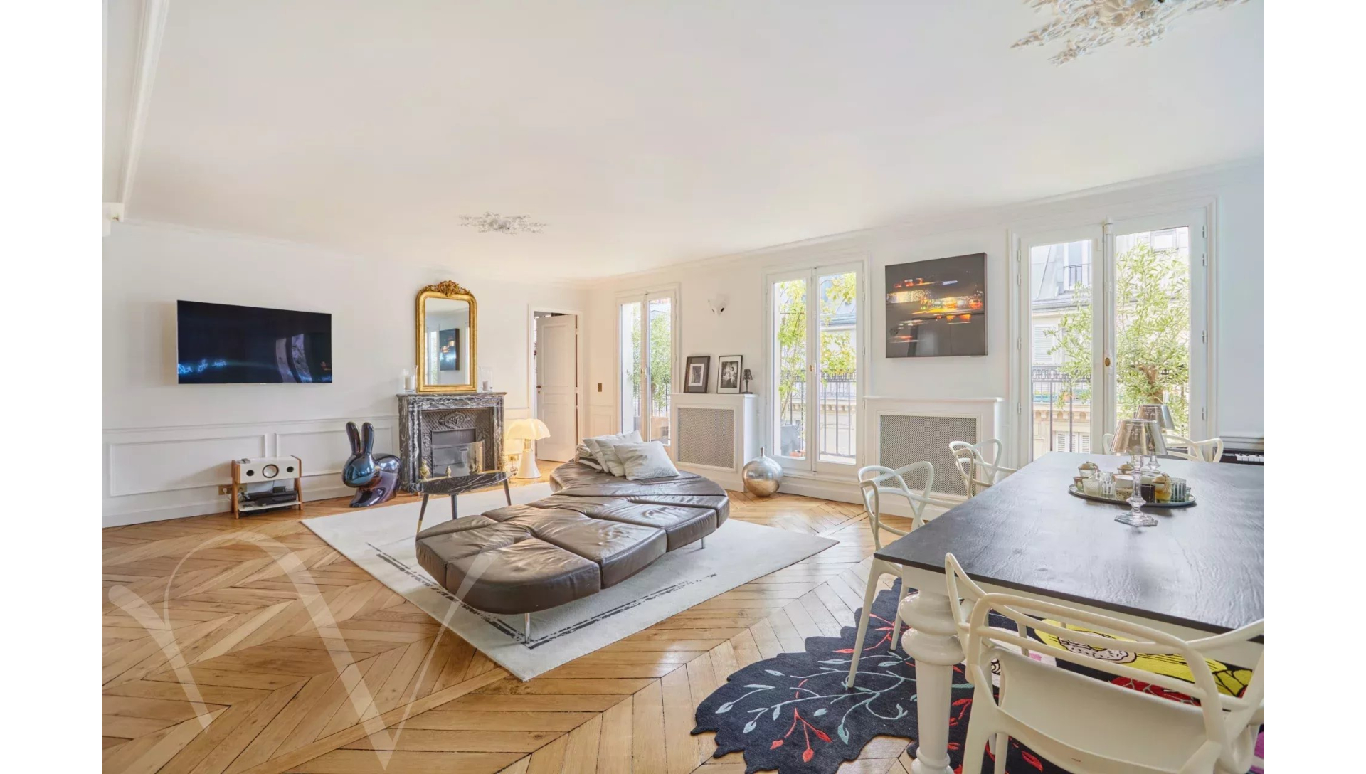 L'appartement est baigné de lumière d'une superficie de 122 m² carrez et se compose au 5e étage d'une entrée avec des toilettes d'invités, une belle réception avec un balcon filant, une cuisine ouverte, une première chambre avec salle d'eau et rangements, une deuxième chambre côté cour arborée, avec salle de bains et grand dressing mural.