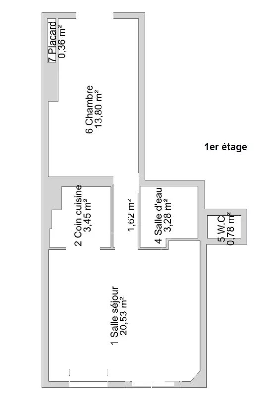 En parfait état, il comprend une entrée, un salon avec deux grandes fenêtres ouvrant sur une agréable cour pavée et arborée, une cuisine semi-ouverte sur le salon, ainsi qu’une chambre au calme donnant sur une petite rue peu passante, une salle d’eau et des toilettes.