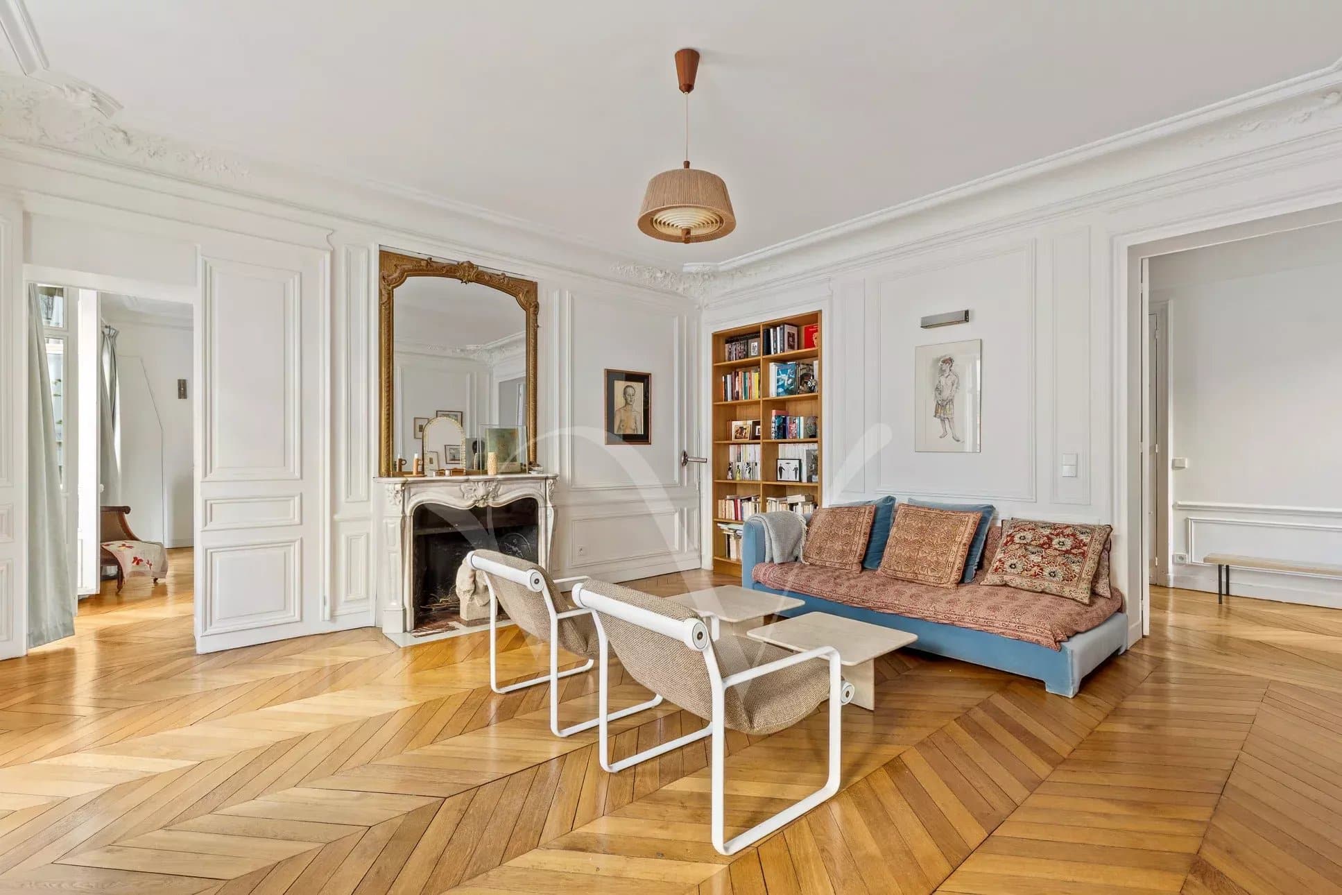 Exclusivité. Dans un bel immeuble en pierre de taille, au troisième étage avec ascenseur, cet appartement traversant de 130 m² donne sur l’impasse Royer-Collard et sur une grande cour pavée. Il est exposé à l’est et à l’ouest. Récemment rénové, l’appartement offre un plan optimisé avec une entrée desservant un salon doté de trois grandes portes-fenêtres ouvrant sur un agréable balcon, une belle salle à manger/cuisine attenante, une superbe suite parentale avec un grand dressing et une salle de bains complète, deux chambres d’enfants, une salle de douche ainsi que des toilettes séparées. Charmant appartement ayant conservé ses éléments d’origine : parquet, moulures et cheminées.