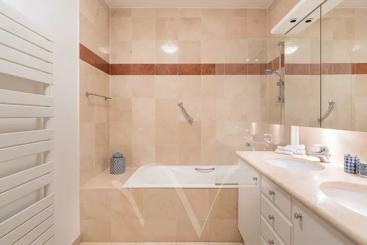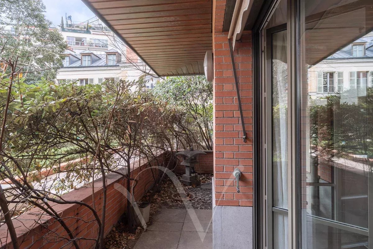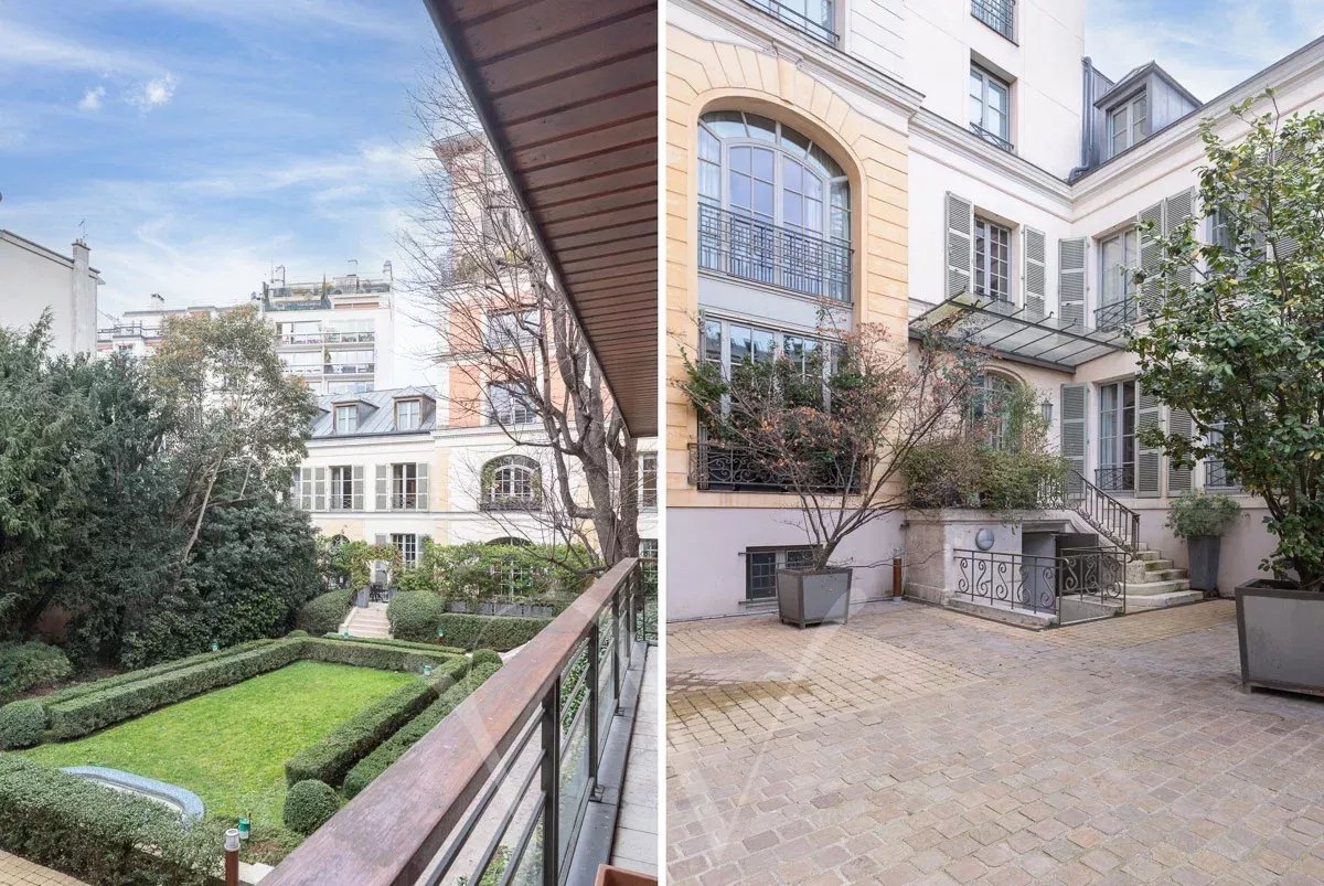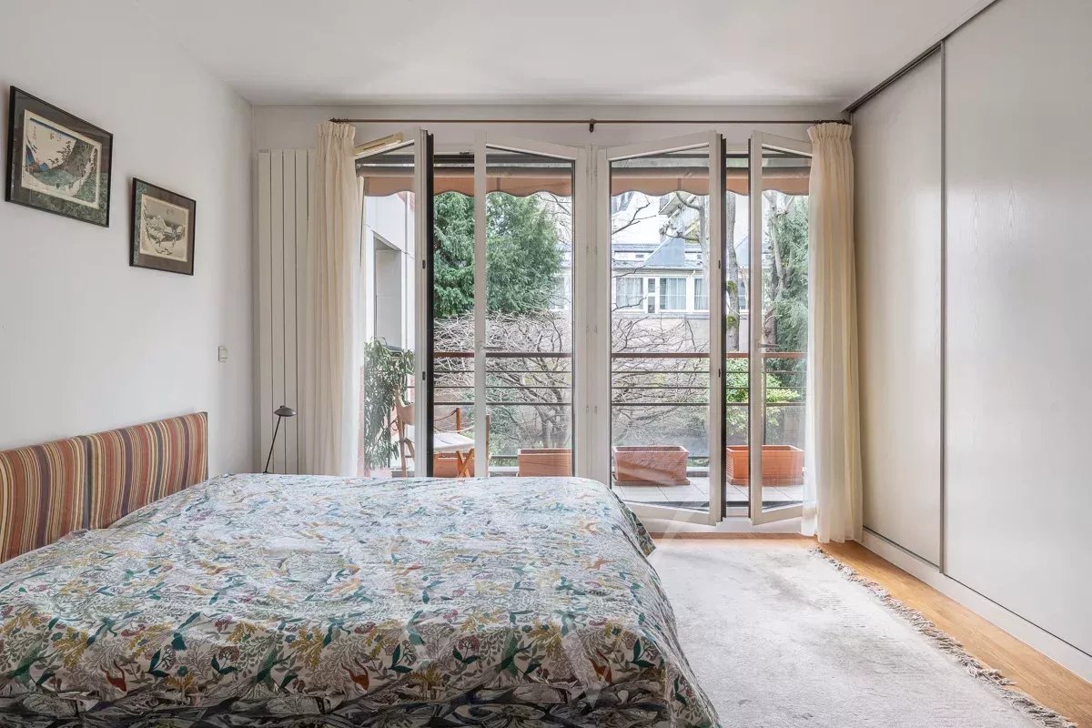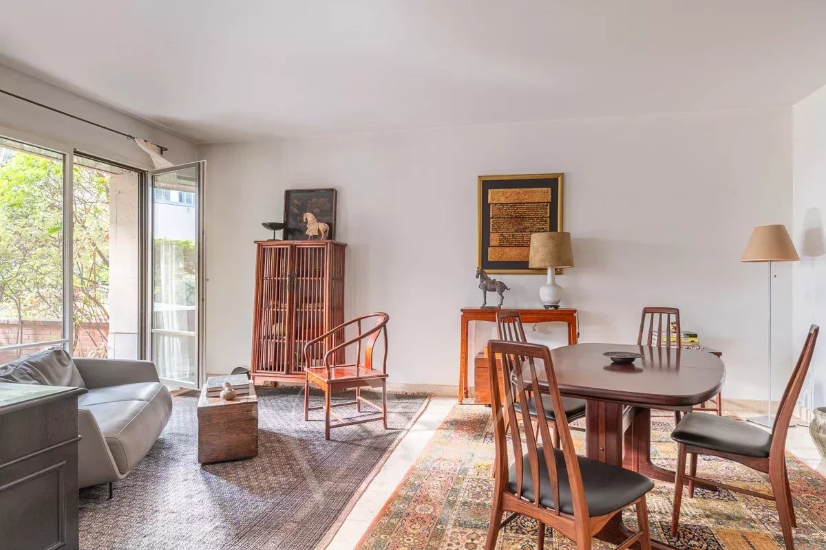 Dans une belle copropriété bien entretenue construite en l’an 2000, duplex en rez de jardin et premier étage de 135,31 m² loi Carrez (136,61 m² au sol) qui se compose d’une entrée ouvrant sur une cuisine, un vaste séjour le tout donnant sur un extérieur privatif, par escalier intérieur accès à trois chambres, une salle de bain avec toilette, dont une chambre principale ou studio indépendant de 30 m² avec salle d’eau et toilette, le tout ouvrant sur un large balcon terrasse de 18 m² offrant des vues sur le jardin de la copropriété. Calme absolu. Un parking en sous-sol pour 60 000 € et deux caves complètent ce bien. Gardien à demeure. Travaux de raffraichissement à prévoir. Le plan de l’appartement peut être inversé, en créant les réceptions au premier étage avec terrasse, et les chambres en rez de jardin.