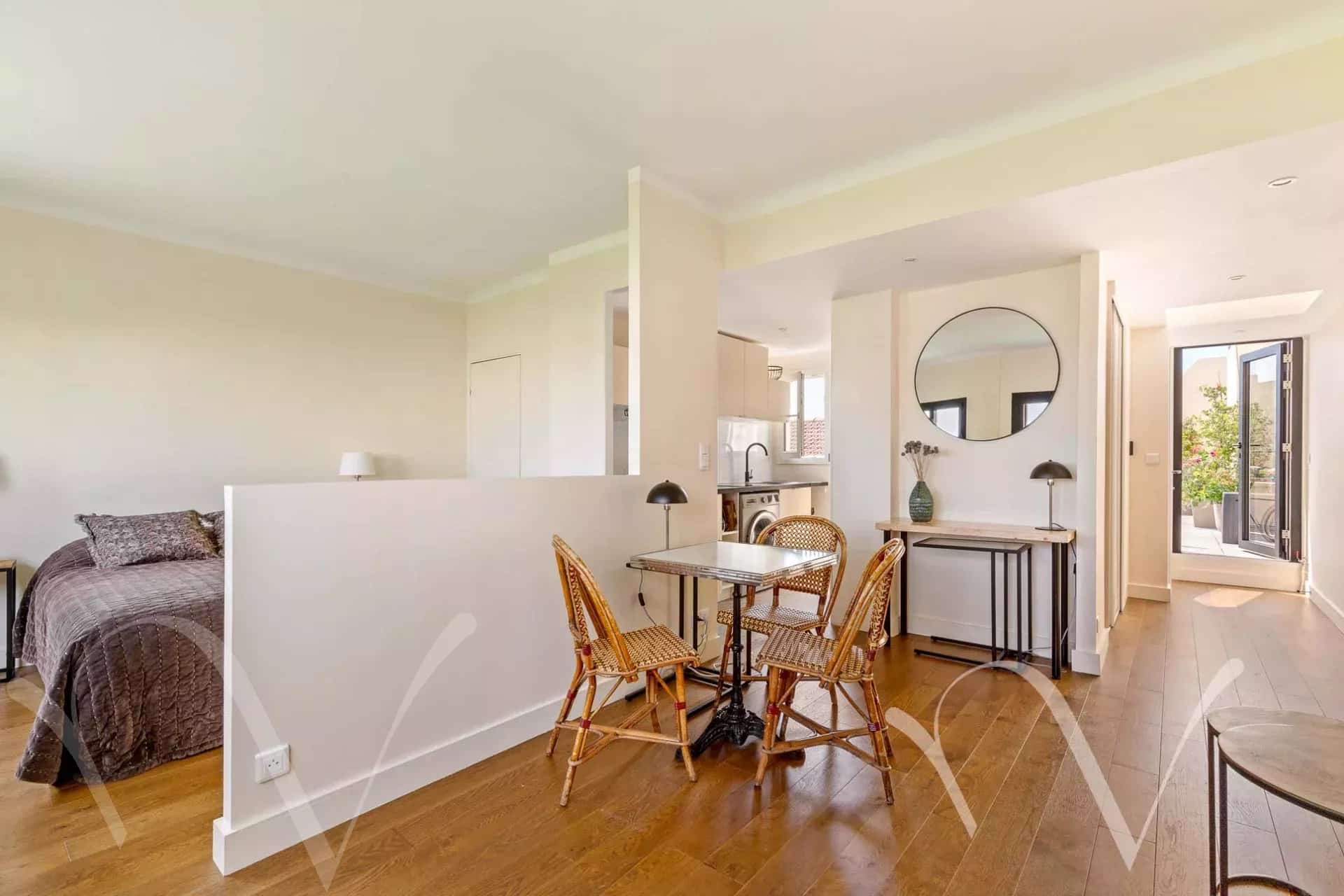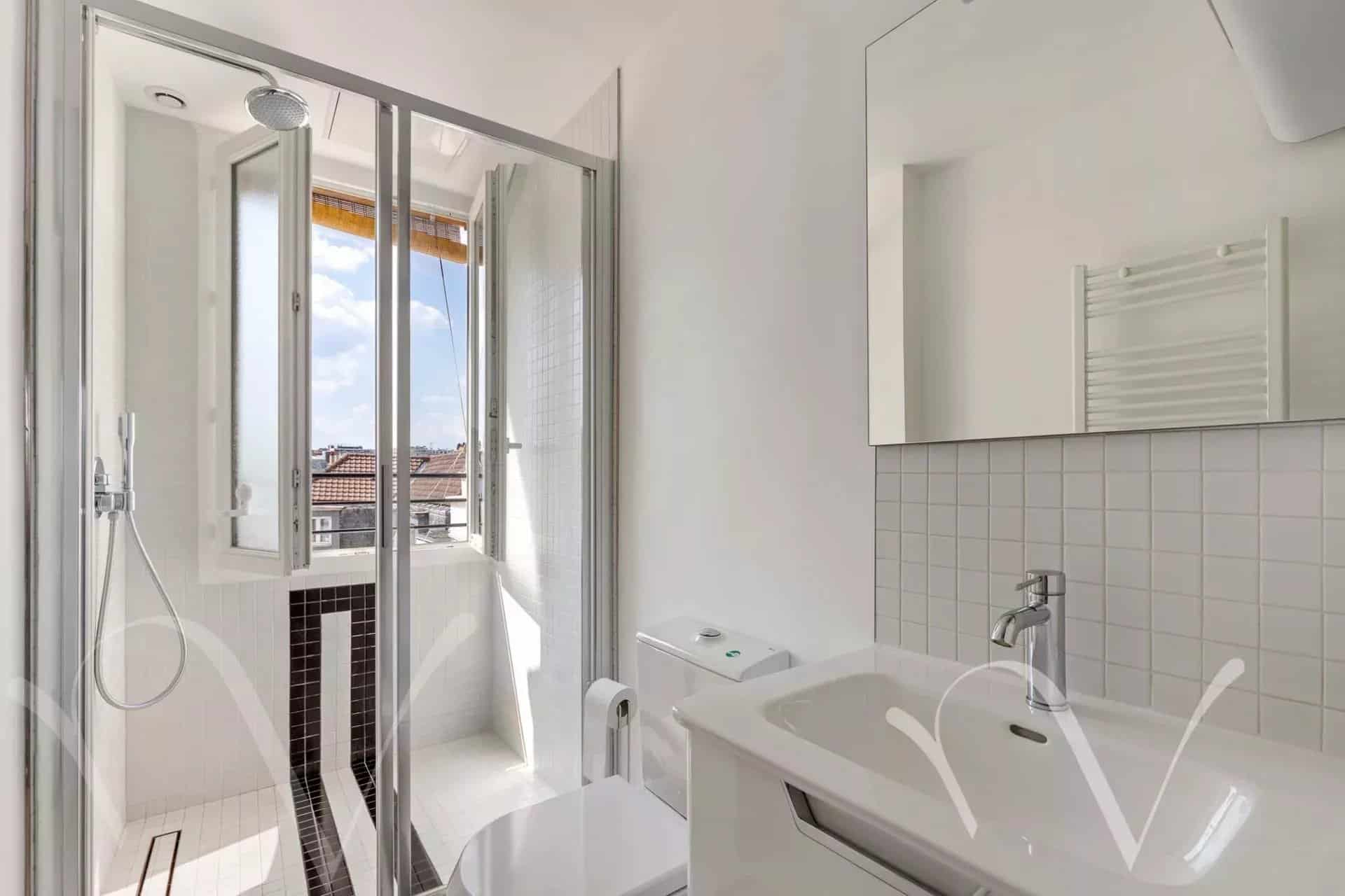 Au pied du métro Eglise d’Auteuil, dans une copropriété des années 30 bien entretenue au 5e et dernier étage accessible par ascenseur jusqu’au 4e, un appartement traversant en parfait état de 35,57 m² loi Carrez comprenant une cuisine, une pièce à vivre avec coin chambre, une salle de douche avec toilette.