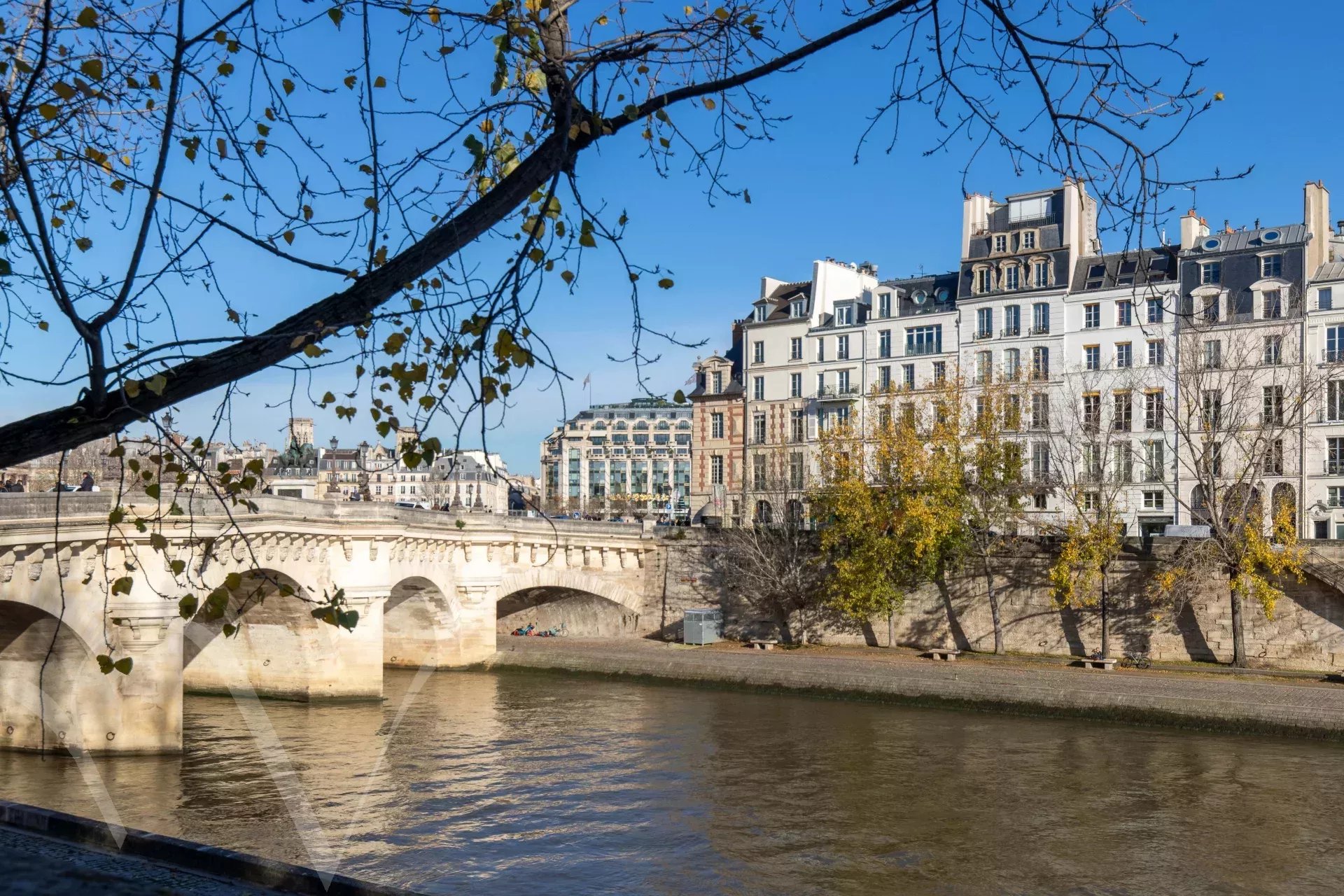 A quelques mètres de la Seine et de l’ile de la Cité, cet appartement « comme une maison » est situé au premier étage avec ascenseur d’un bel immeuble ancien. Il est composé d’un salon, une salle à manger et deux chambres, une salle de bains, une cuisine indépendante et des toilettes séparées.
