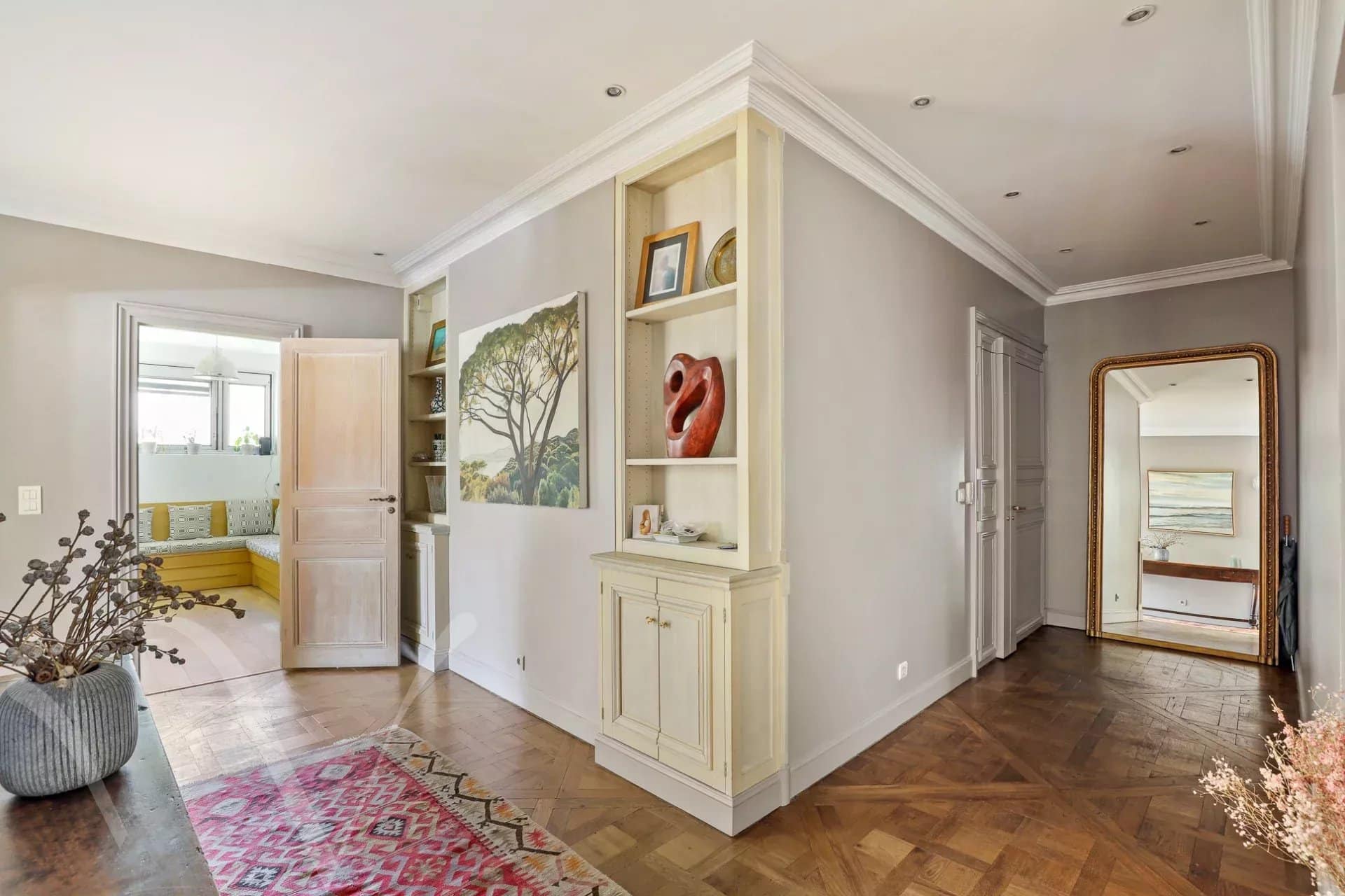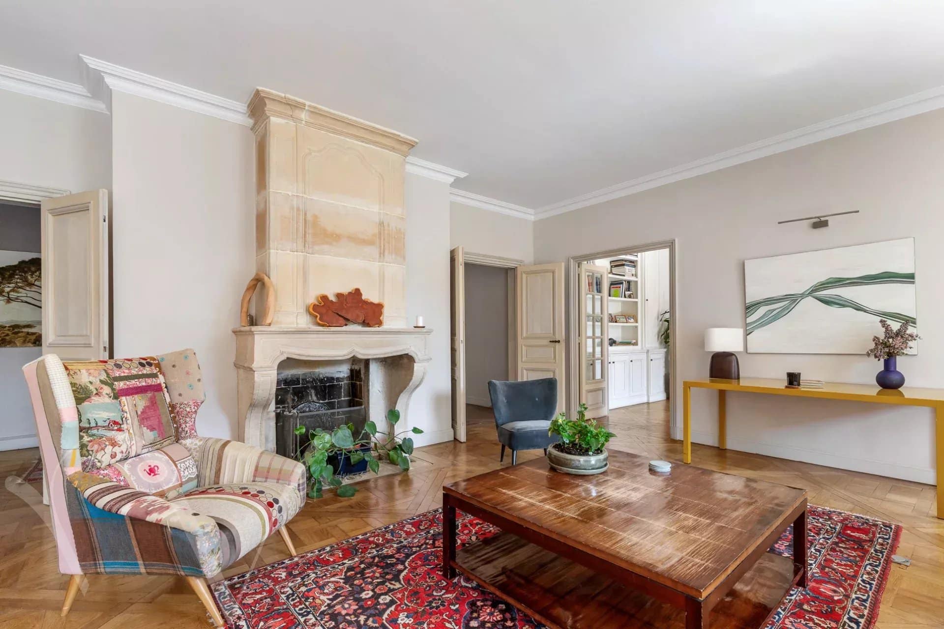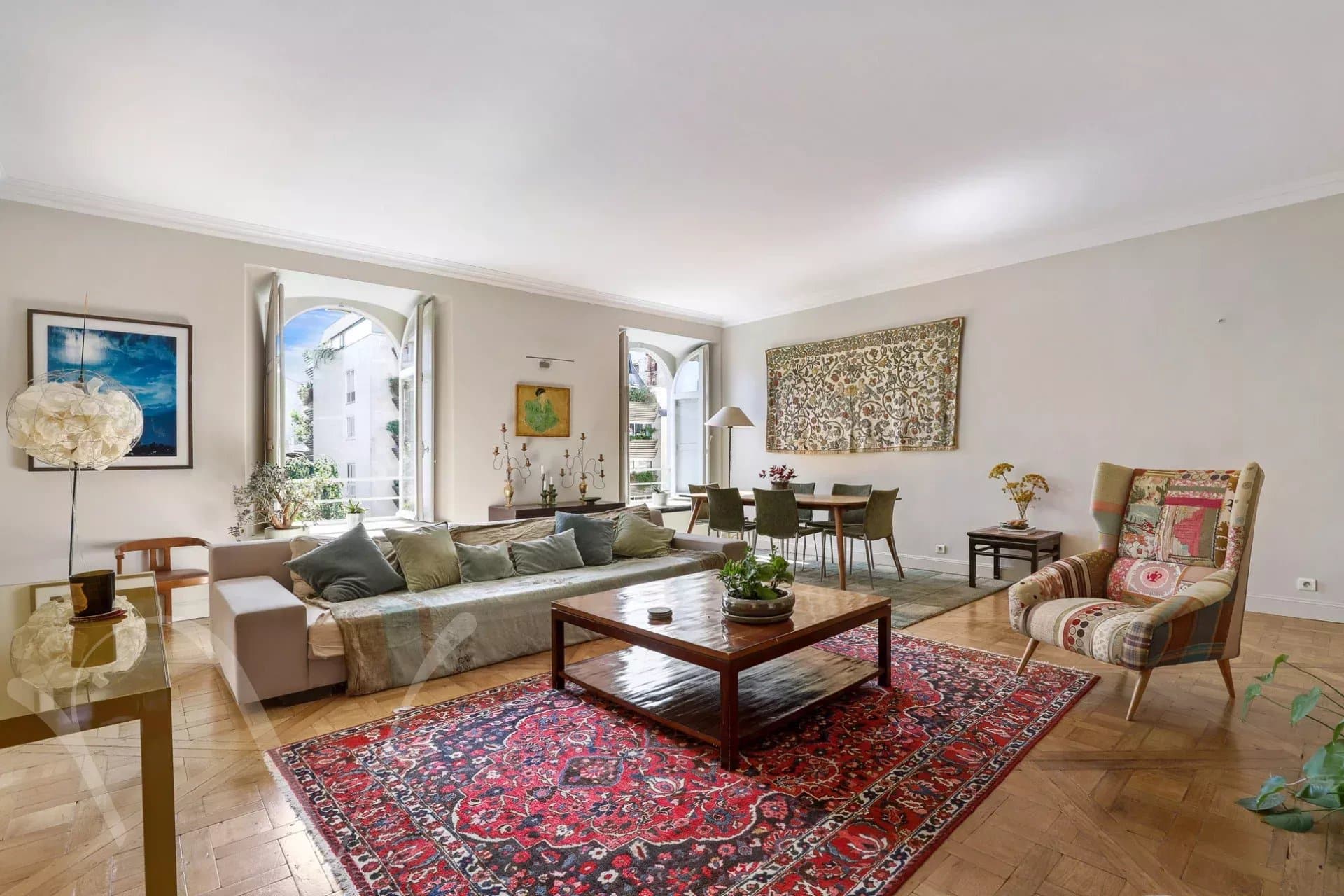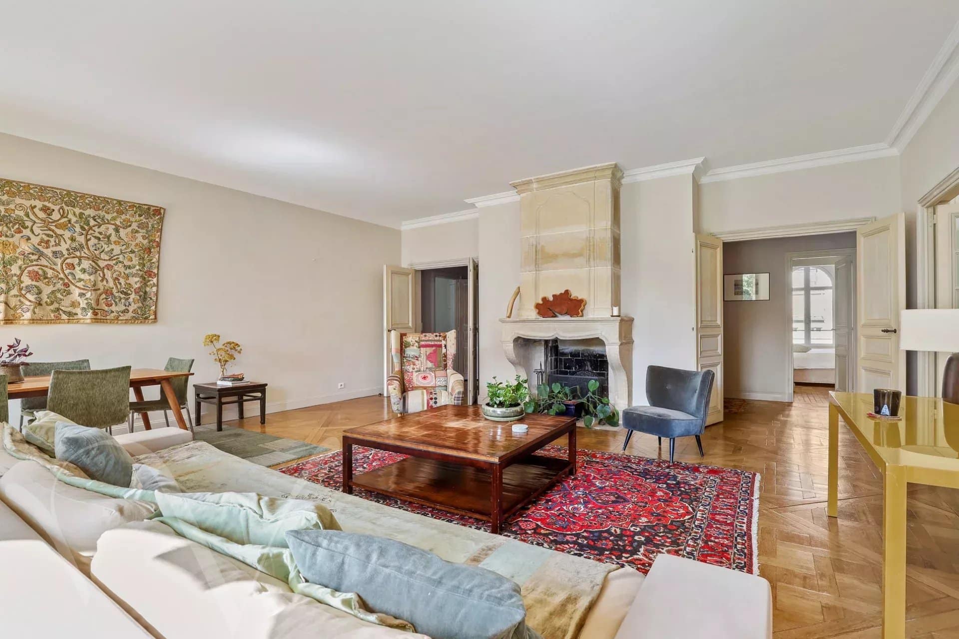 Au coeur de Saint Germain des Prés, dans la partie historique de l’Hôtel de Vaudreuil élevé au XVIIIè siècle, au quatrième étage avec ascenseur, un appartement d’une superficie de 213 m² loi Carrez au calme absolu doté d’une vue majeure sur le jardin du square Récamier et sur la cour d’honneur. Il se compose d’une galerie d’entrée, une vaste pièce de réception, un bureau, quatre chambres chacune avec sa salle de bains et toilette, une cuisine aménagée et équipée, un vestiaire invité, une lingerie et de nombreux rangements. Orientation Est-Ouest. En annexe, un box et une cave. Possibilité de profiter de la piscine à l’intérieur de l’immeuble et d’un espace de sport. Gardien à demeure.