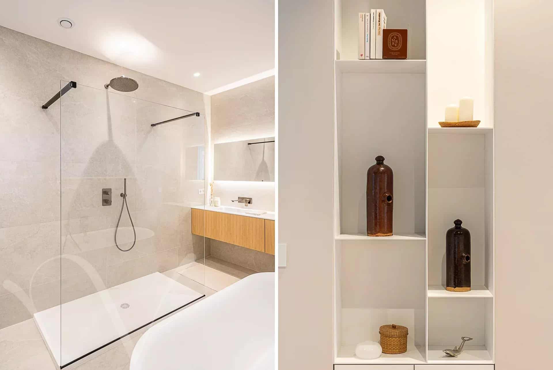 L’appartement comprend en rez-de-cour : Une entrée, un salon/salle à manger, une cuisine ouverte équipée avec un espace repas sous verrière, une chambre avec une salle de bains, toilettes séparées. Et au premier étage : Une chambre parents avec une salle de bains et de multiples rangements, deux chambres d’enfants et une salle de bains, toilettes séparées
