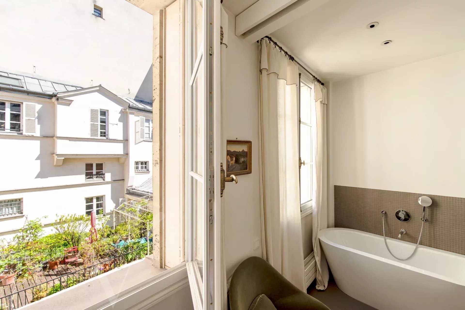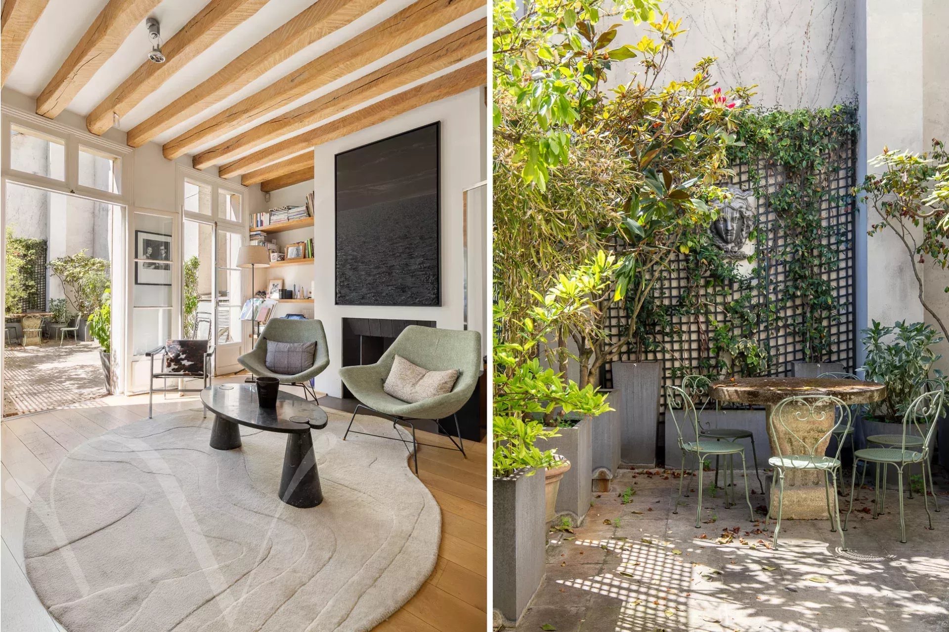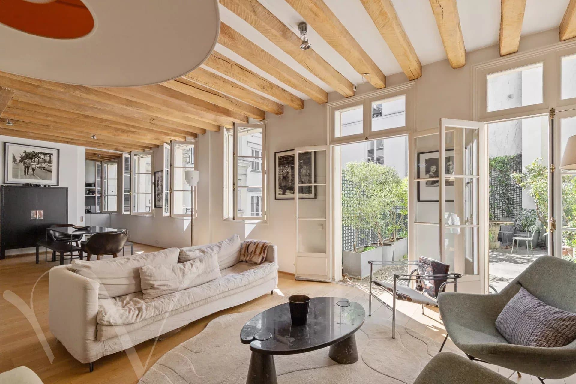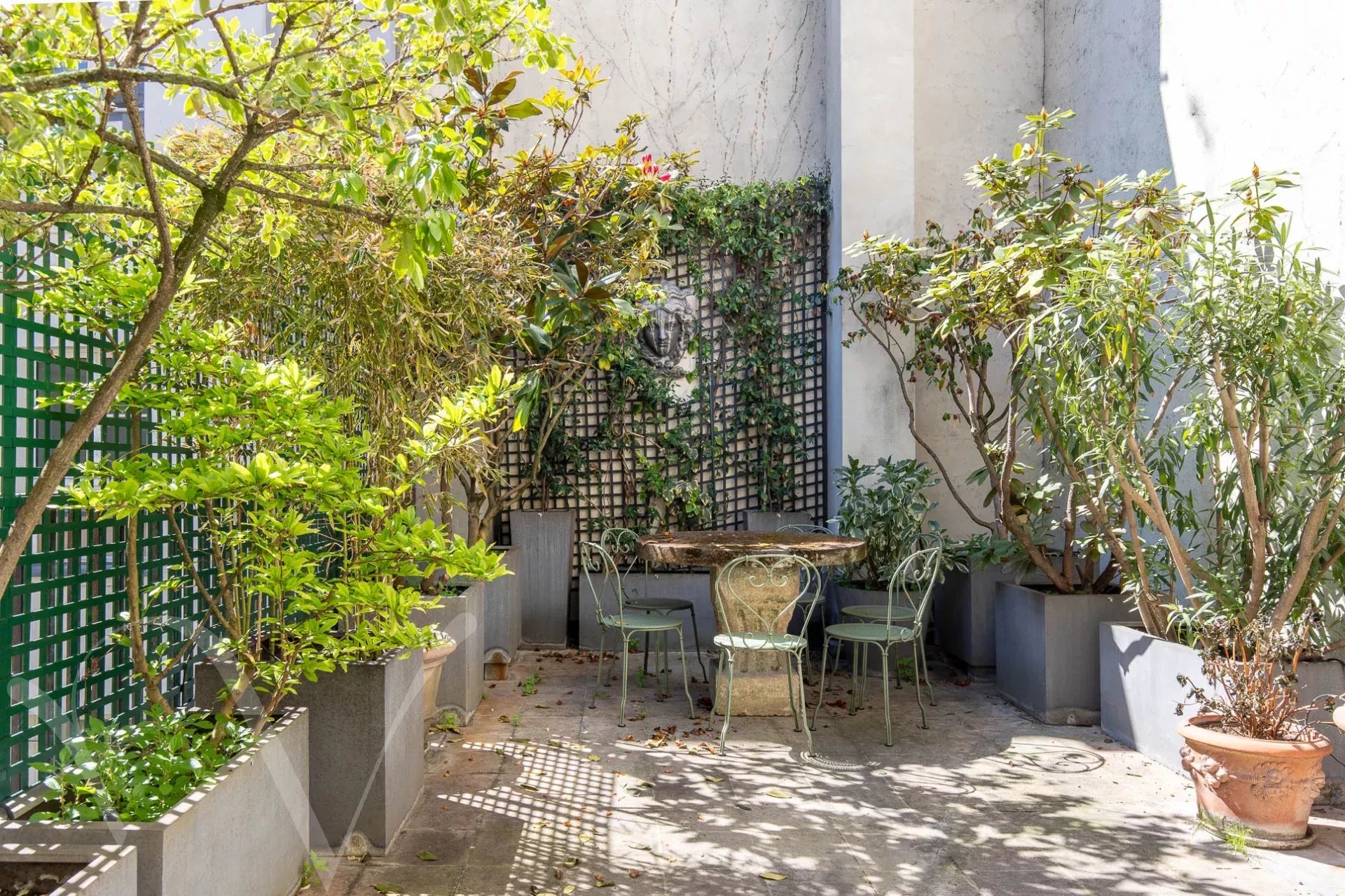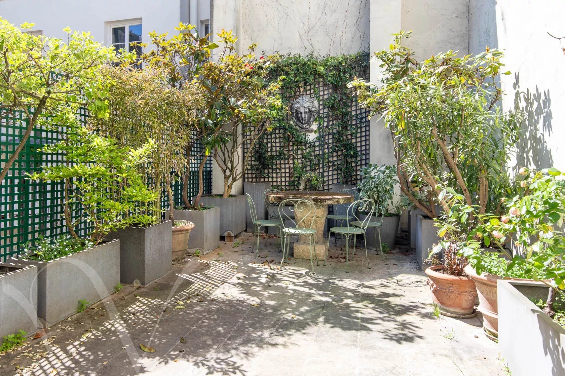 Au cœur de Saint Germain des Près, au deuxième étage avec ascenseur d’une belle copropriété, entre rue calme et jardins, un appartement de 109,56 m2 loi Carrez composé d’une entrée, un ravissant salon donnant sur jardins avec un accès à une superbe terrasse de 35 m², une cuisine attenante au salon, deux chambres chacune en suite avec sa salle de bains et toilettes. En annexe, un emplacement de parking au premier sous-sol. Il est également possible d’acquérir un magnifique studio de 25 m², entièrement rénové, au premier étage, donnant sur jardin.