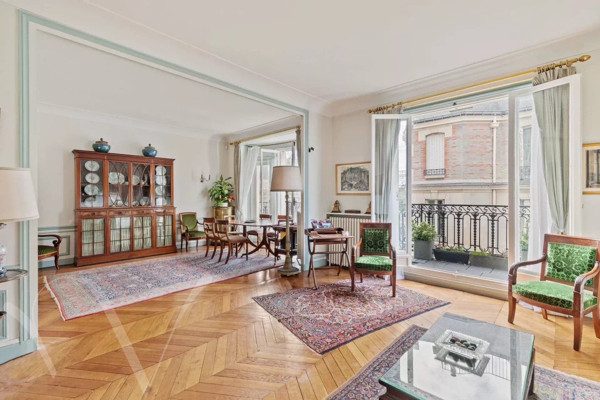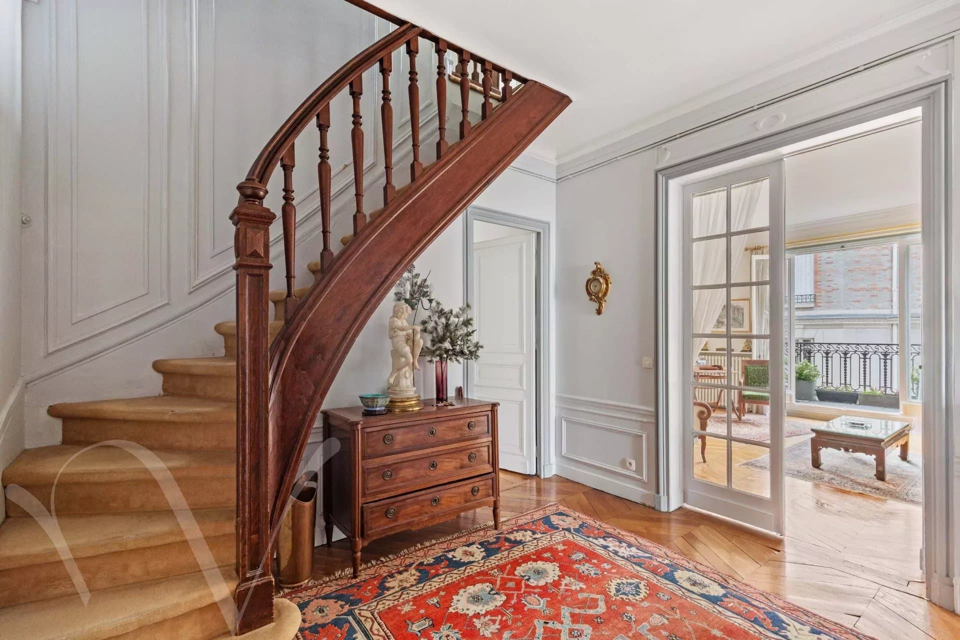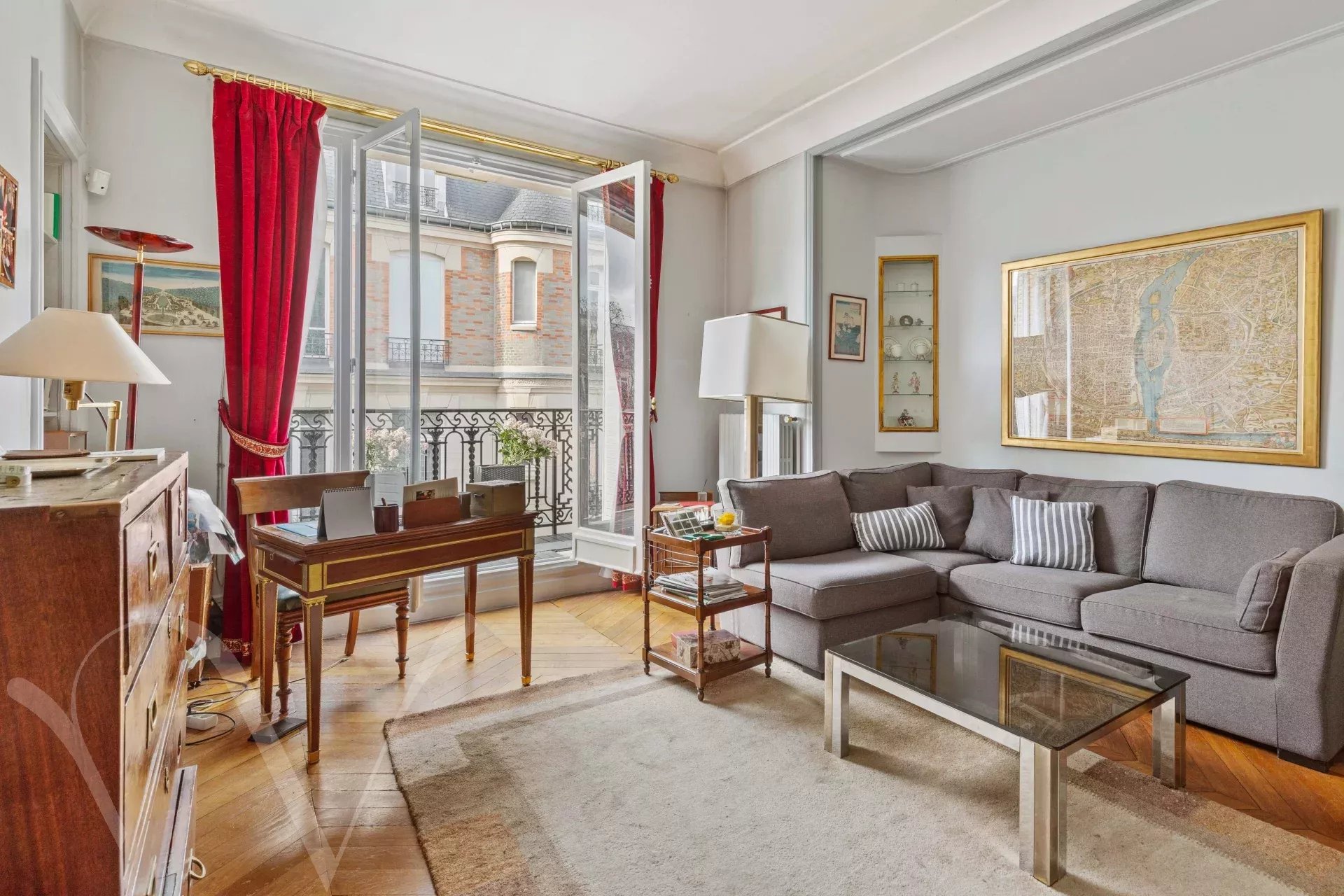 Rue de Luynes, au cœur de cette jolie rue, au cinquième étage avec ascenseur d’un bel immeuble en pierre de taille, un appartement familial de 193.44 m² loi Carrez et 206.50 m² au sol. Il se compose : au cinquième étage, entrée, salon, salle à manger, cuisine, bureau, deux chambres, une salle de bains et wc séparés. Au sixième étage, relié par un escalier intérieur, deux chambres supplémentaires, une salle de douche avec WC et une buanderie. Sur le même palier, relié à l’appartement ou indépendant, un petit studio sous les toits. Beaux volumes au cinquième étage avec 3.10 mètres d’hauteur sous plafond. L’appartement est clair et offre des vues sur les toits et dégagées. Appartement élégant, idéalement situé au cœur du quartier Bac-Grenelle.