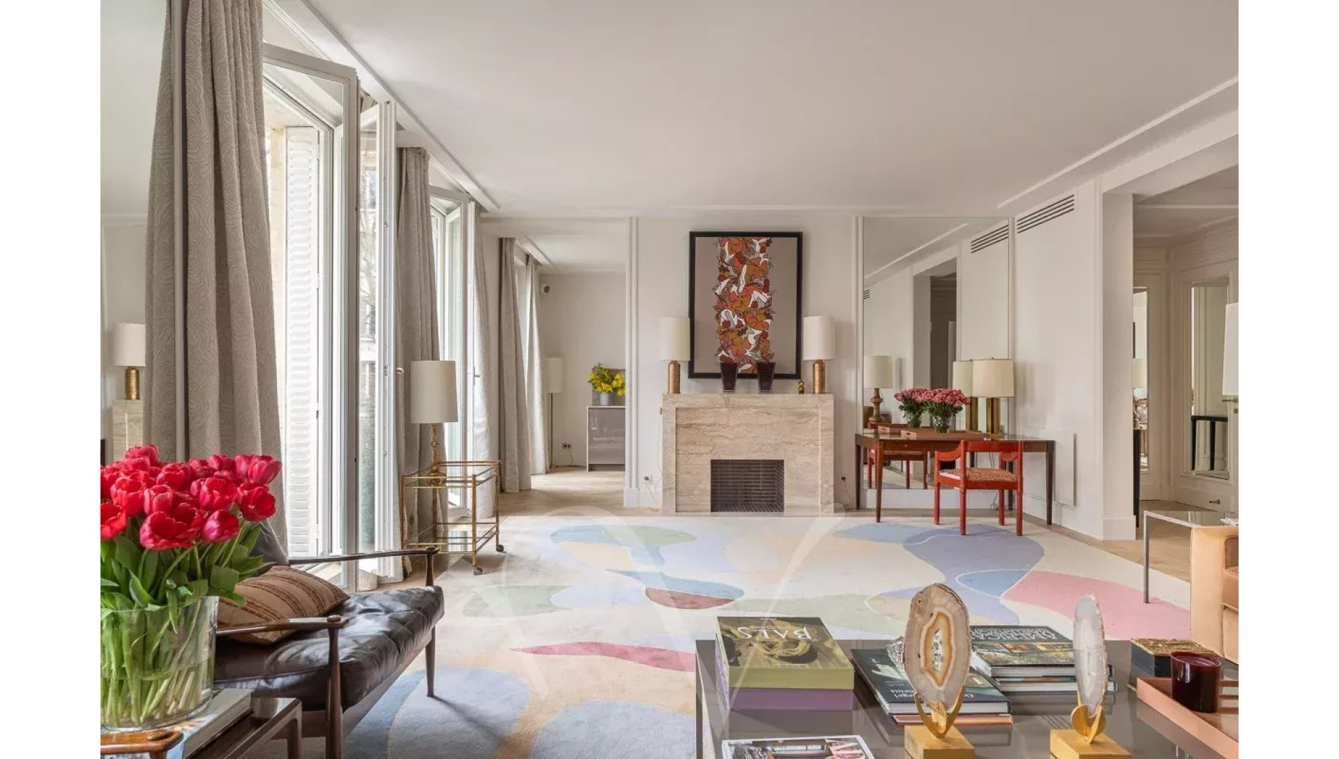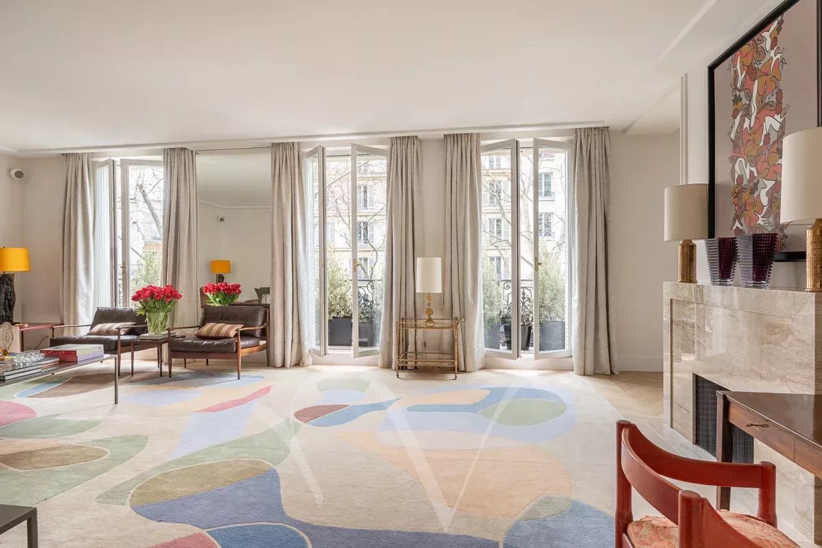 Paris V. Au sein du quartier Maubert, vivant et authentique, dans un bel immeuble en pierre de taille, au deuxième étage noble avec ascenseur, cet appartement de 125m² avec un beau balcon est exposé au sud.