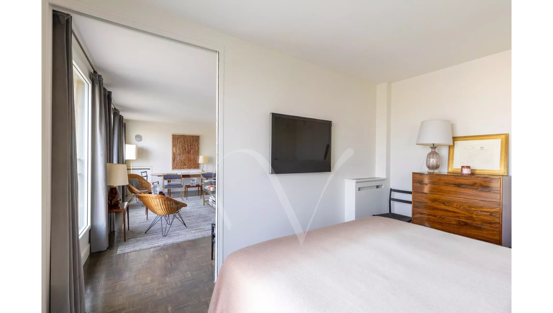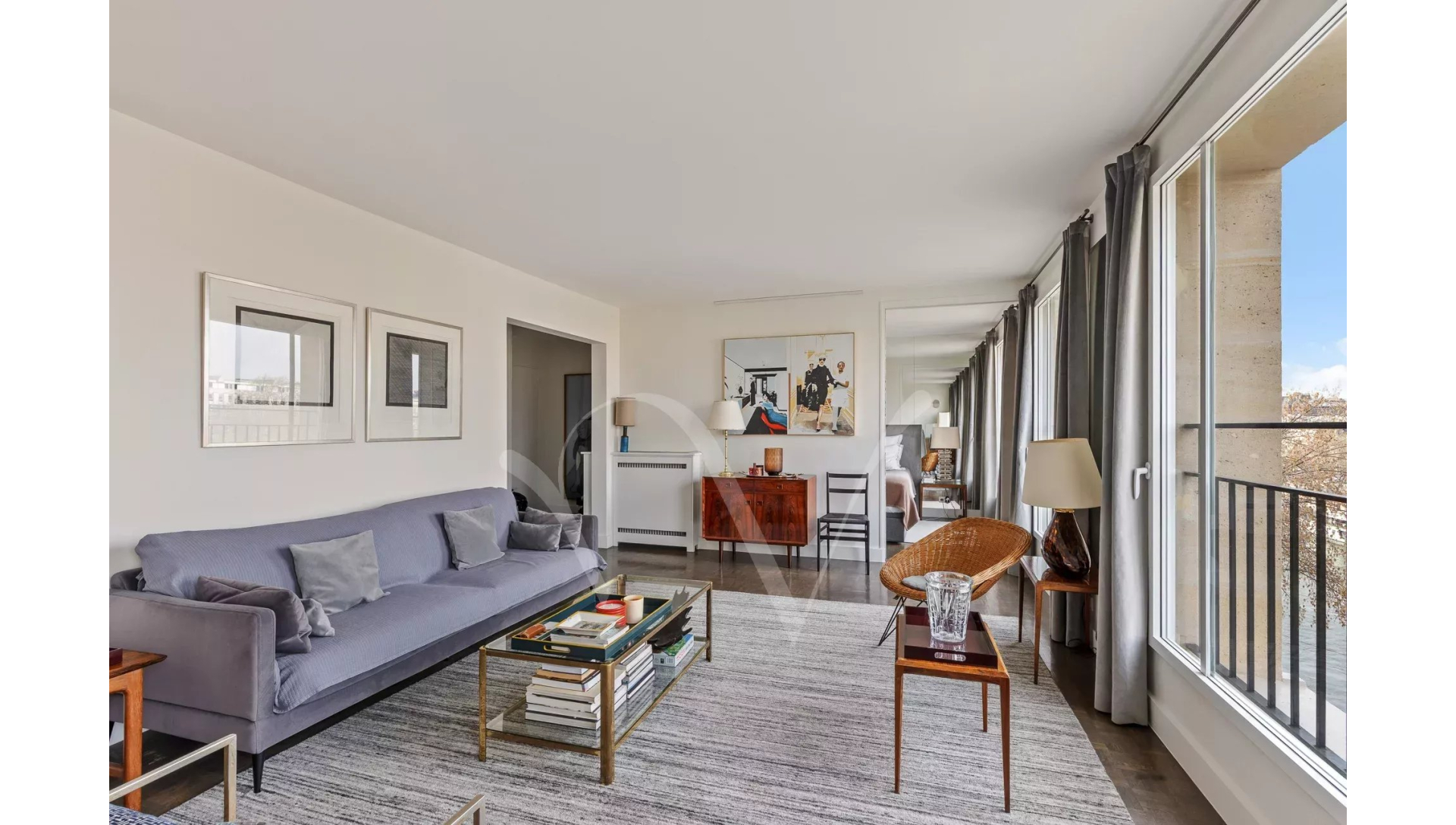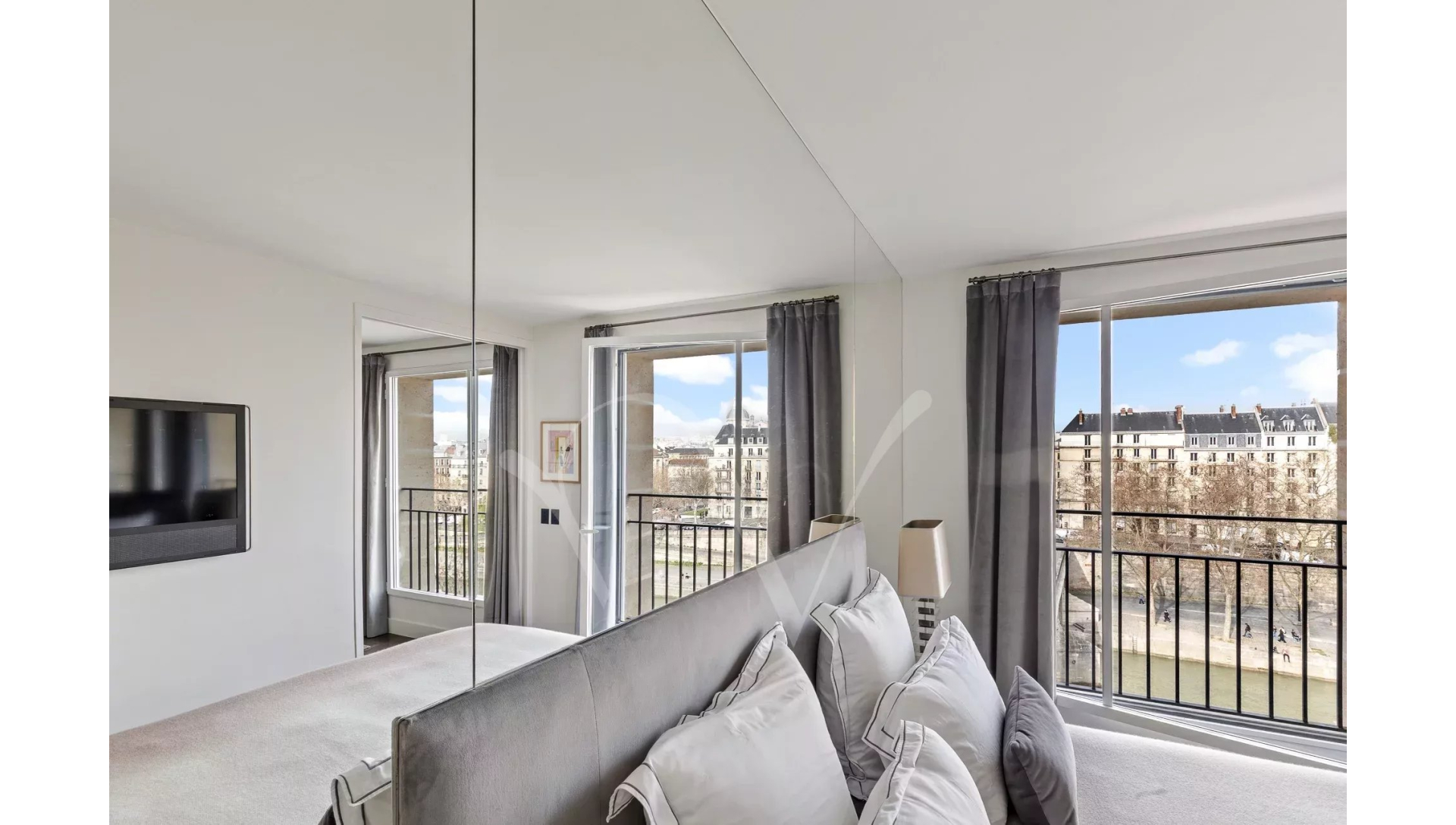 Dans un bel immeuble récent, au cinquième étage desservi par un grand ascenseur, magnifique appartement de 65 m² composé d'un salon avec trois grandes portes-fenêtres donnant sur la Seine, une belle chambre, une grande salle de douche avec WC, une cuisine équipée et des toilettes d'invités.