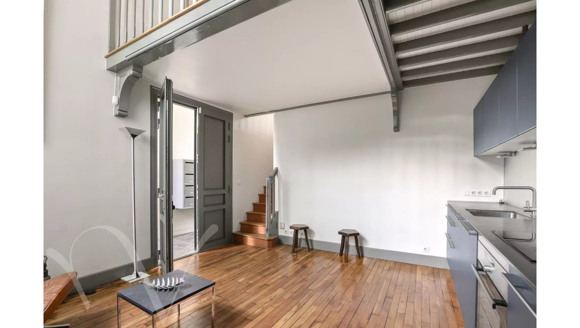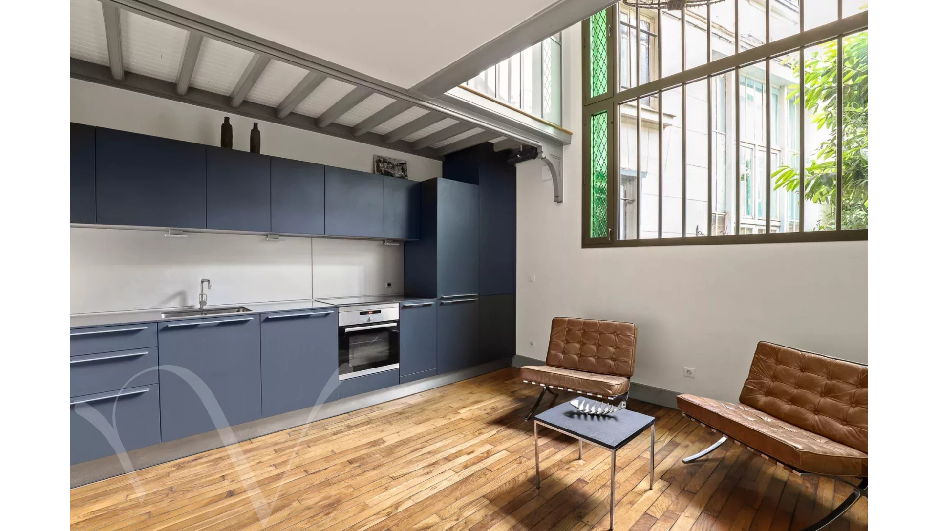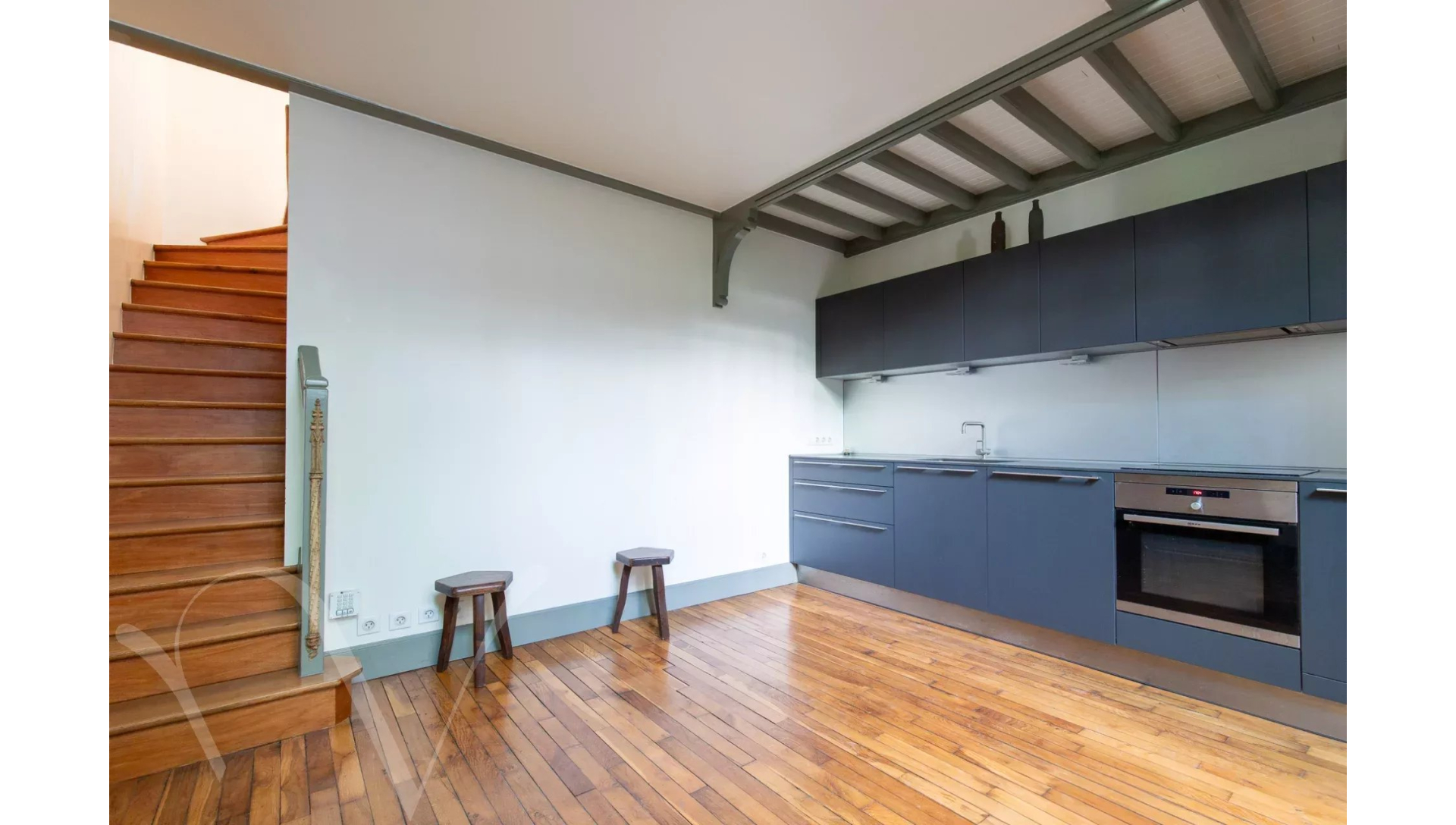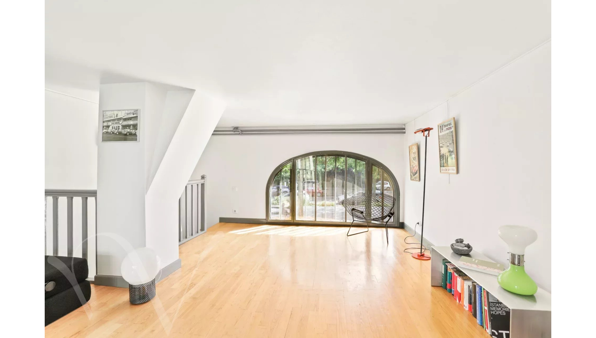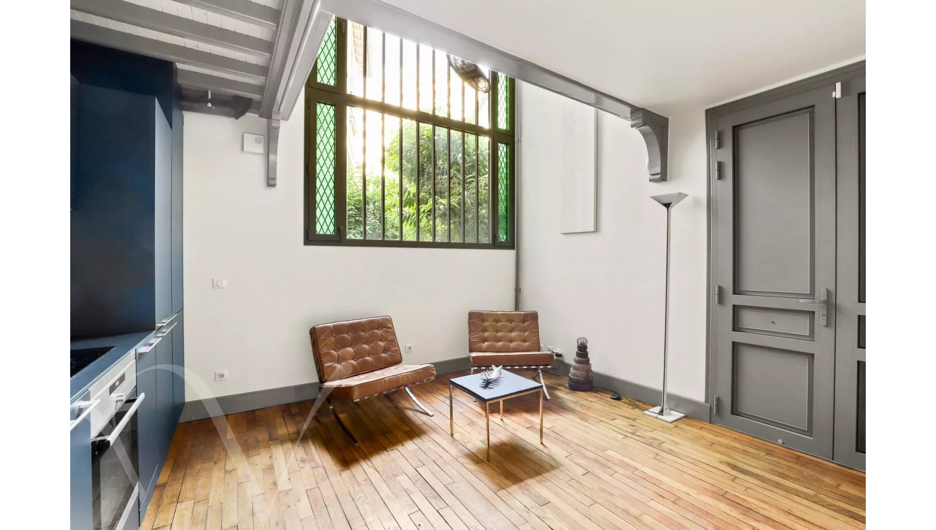 Exclusivité. Un bel atelier d'artiste de 42.5 m² en parfait état au sein d'une copropriété charmante au coeur du quartier Edgar Quinet, offrant une double exposition sur rue et cour jardin. Au rez-de-cour, se trouve une pièce de réception avec espace cuisine et une large verrière atelier.